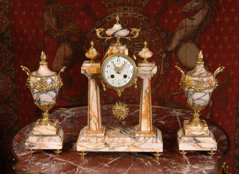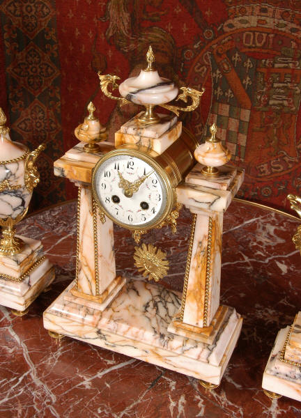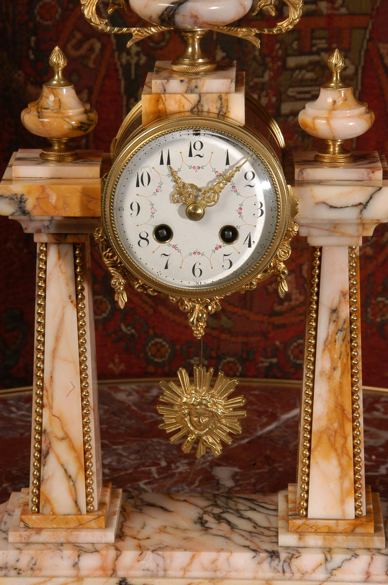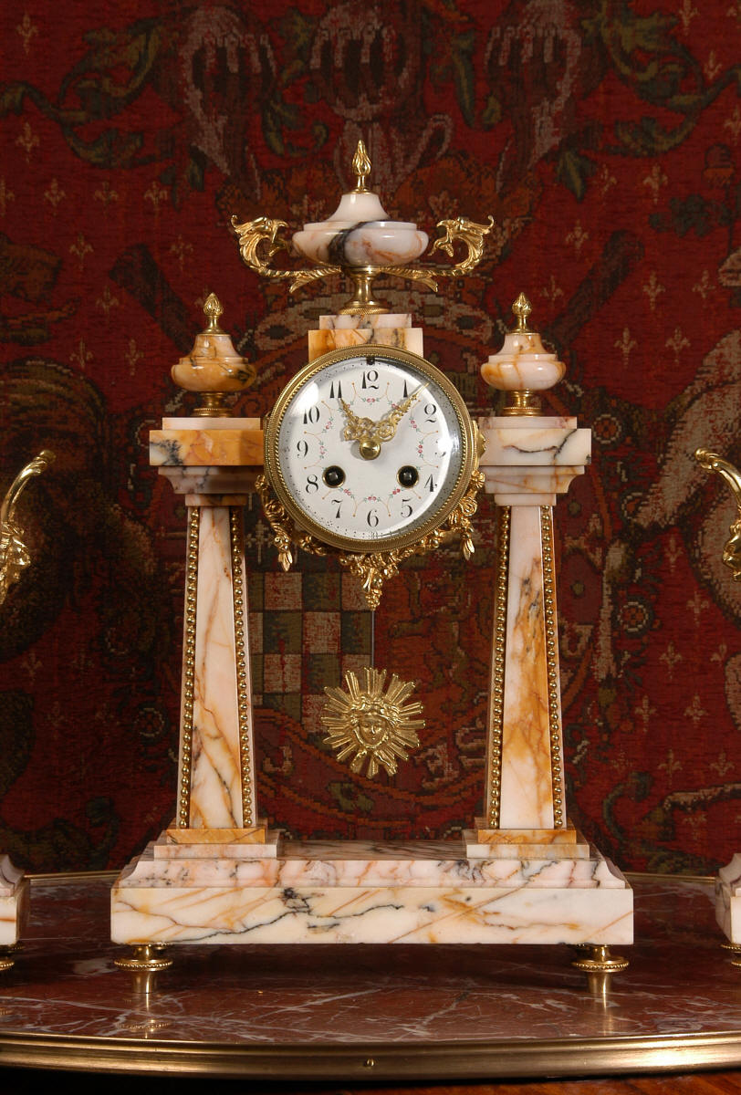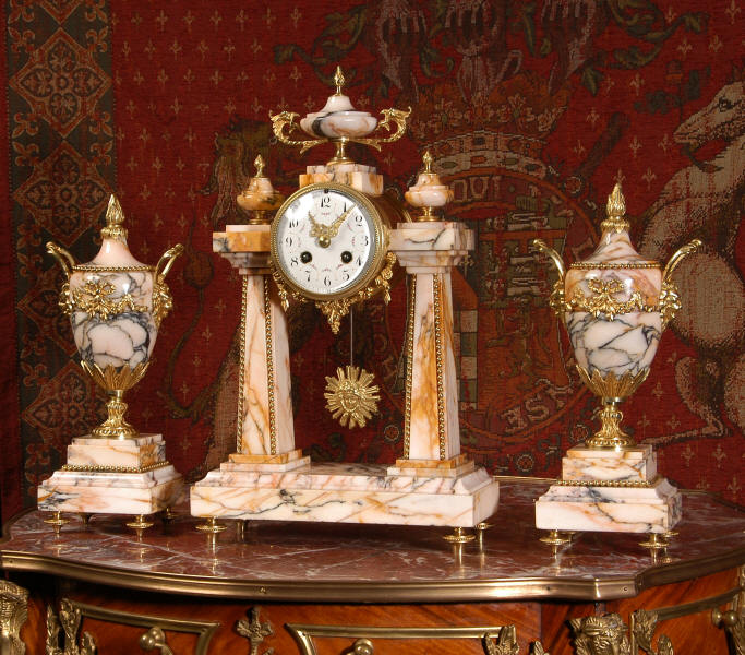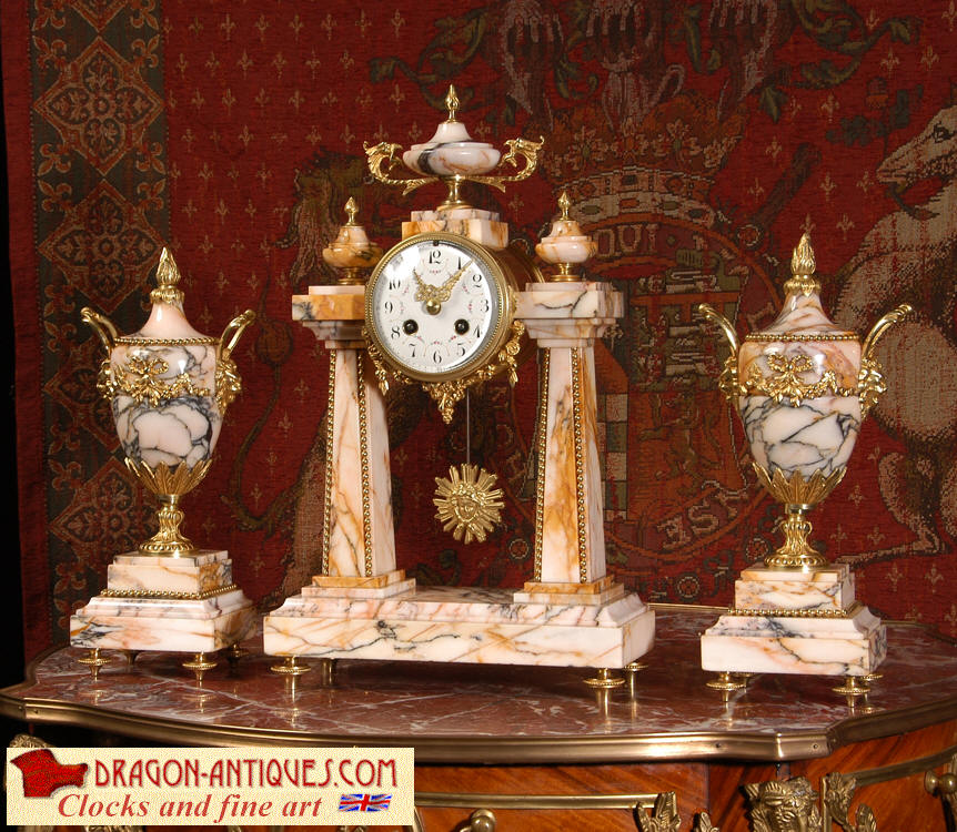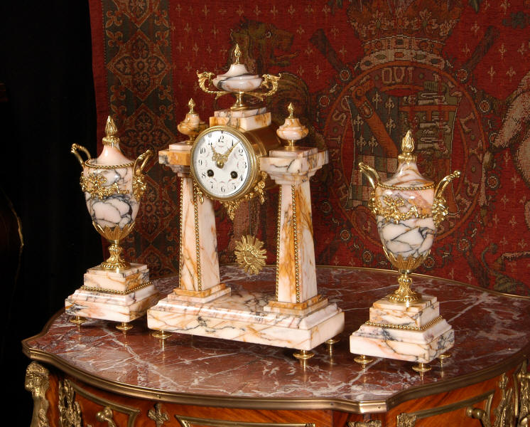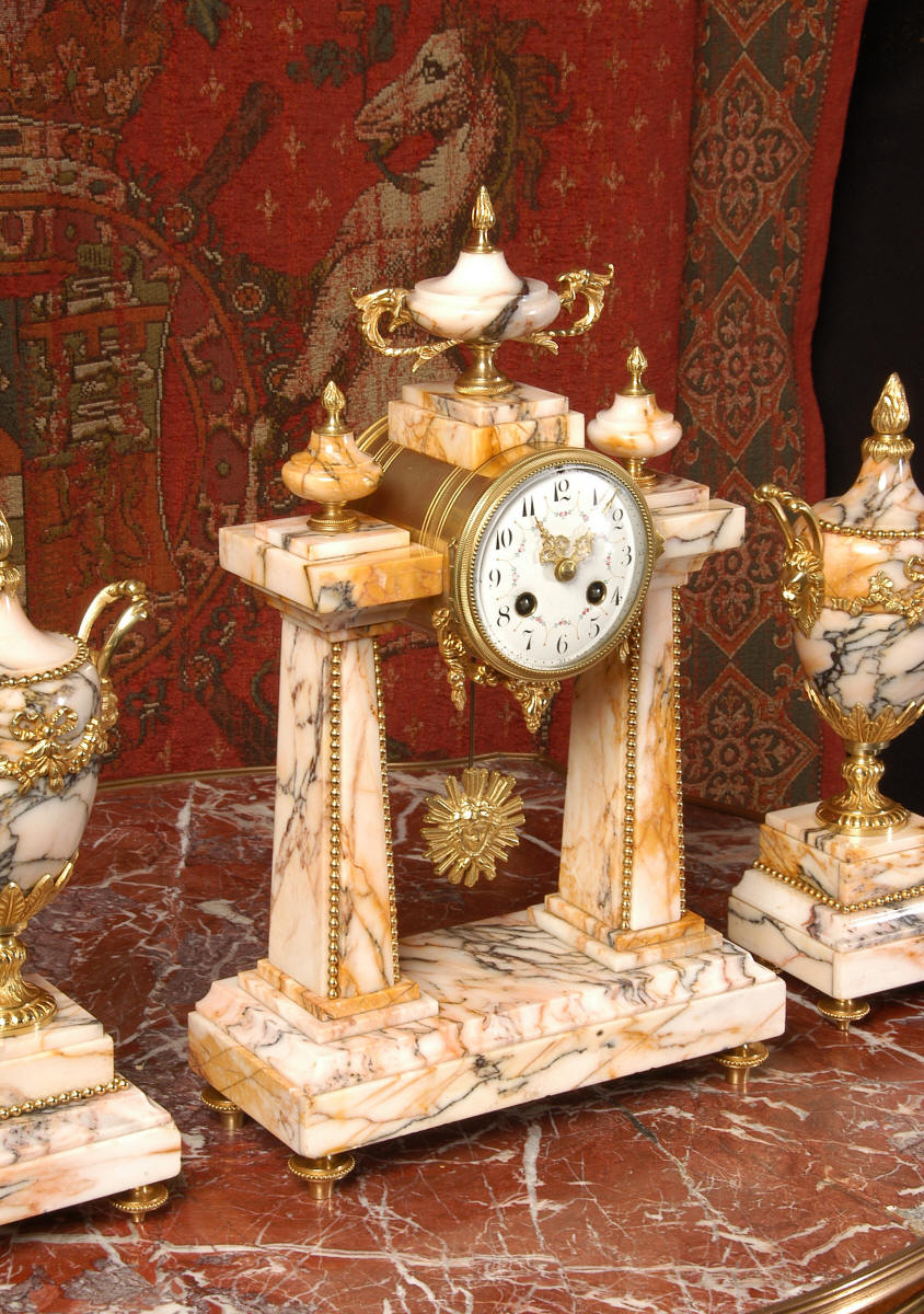 Marble and Ormolu Portico Clock Set
