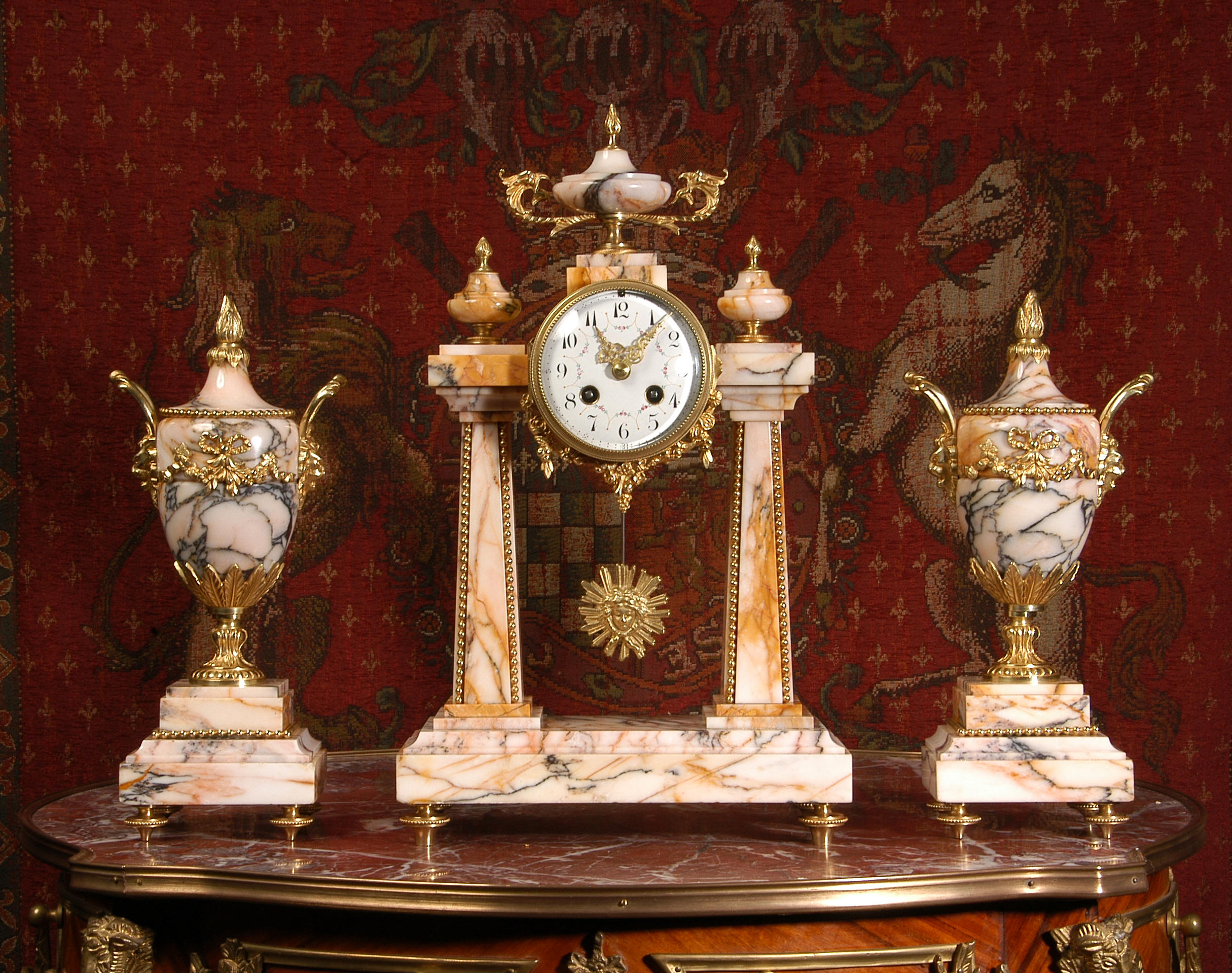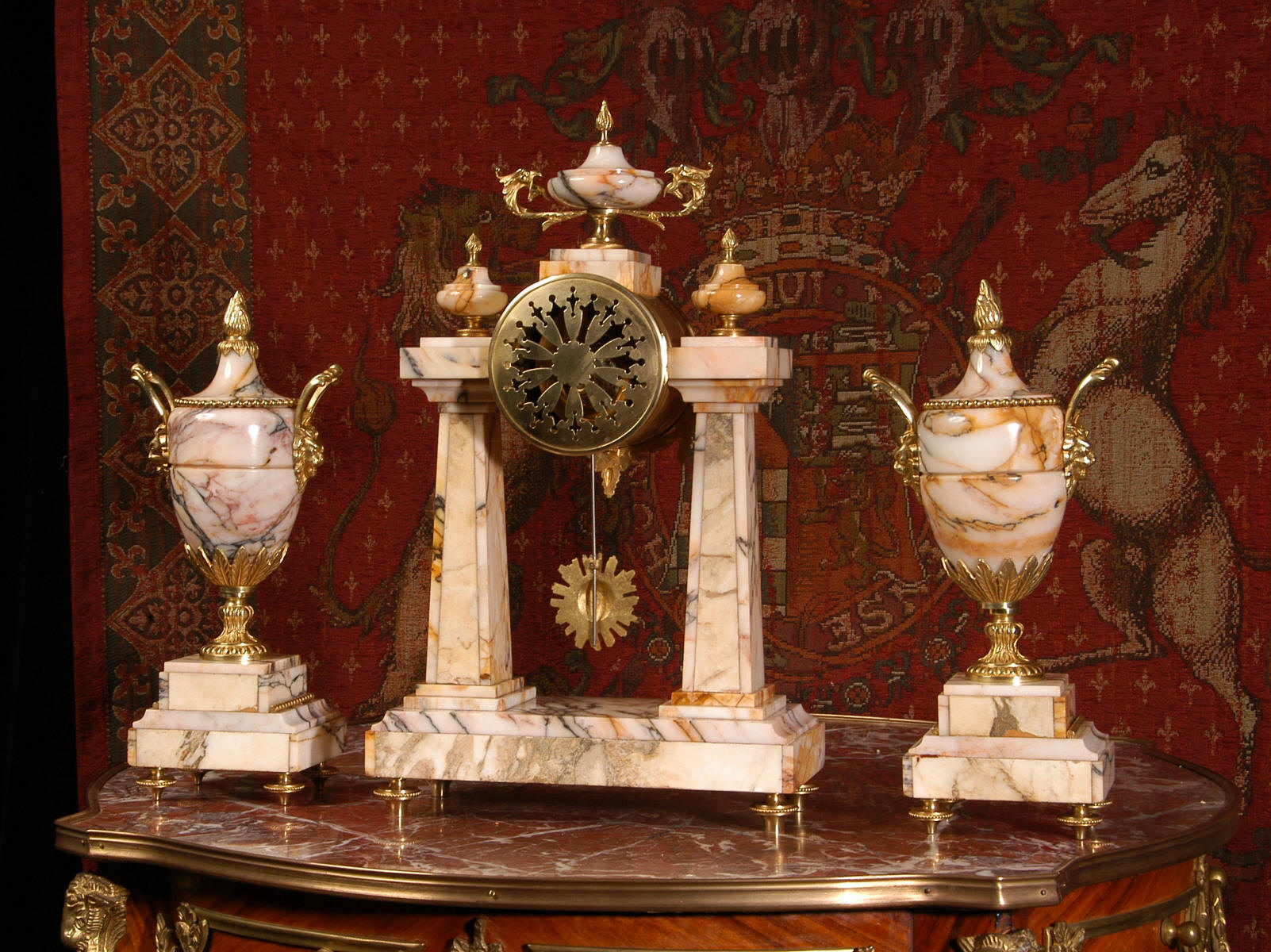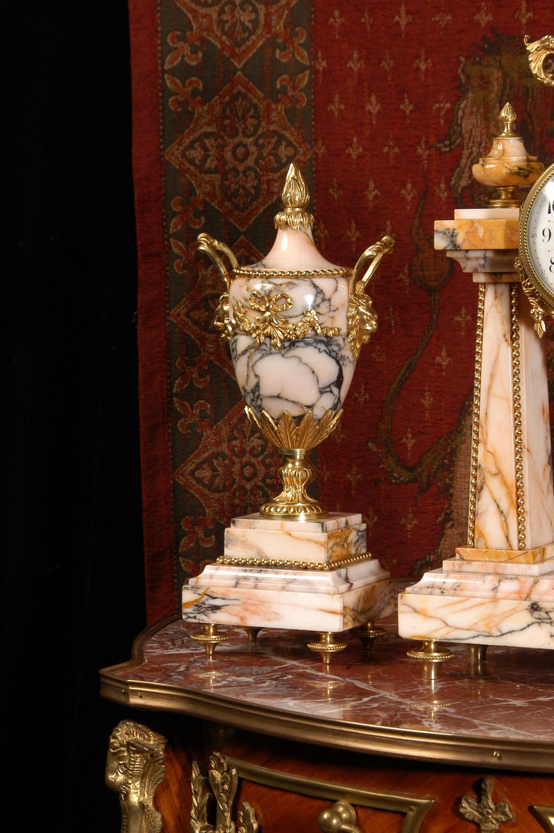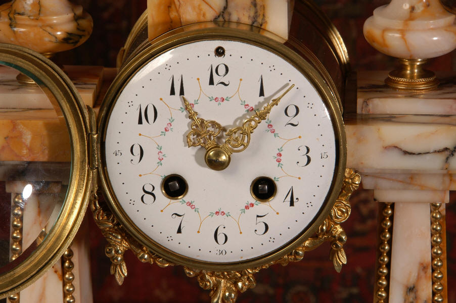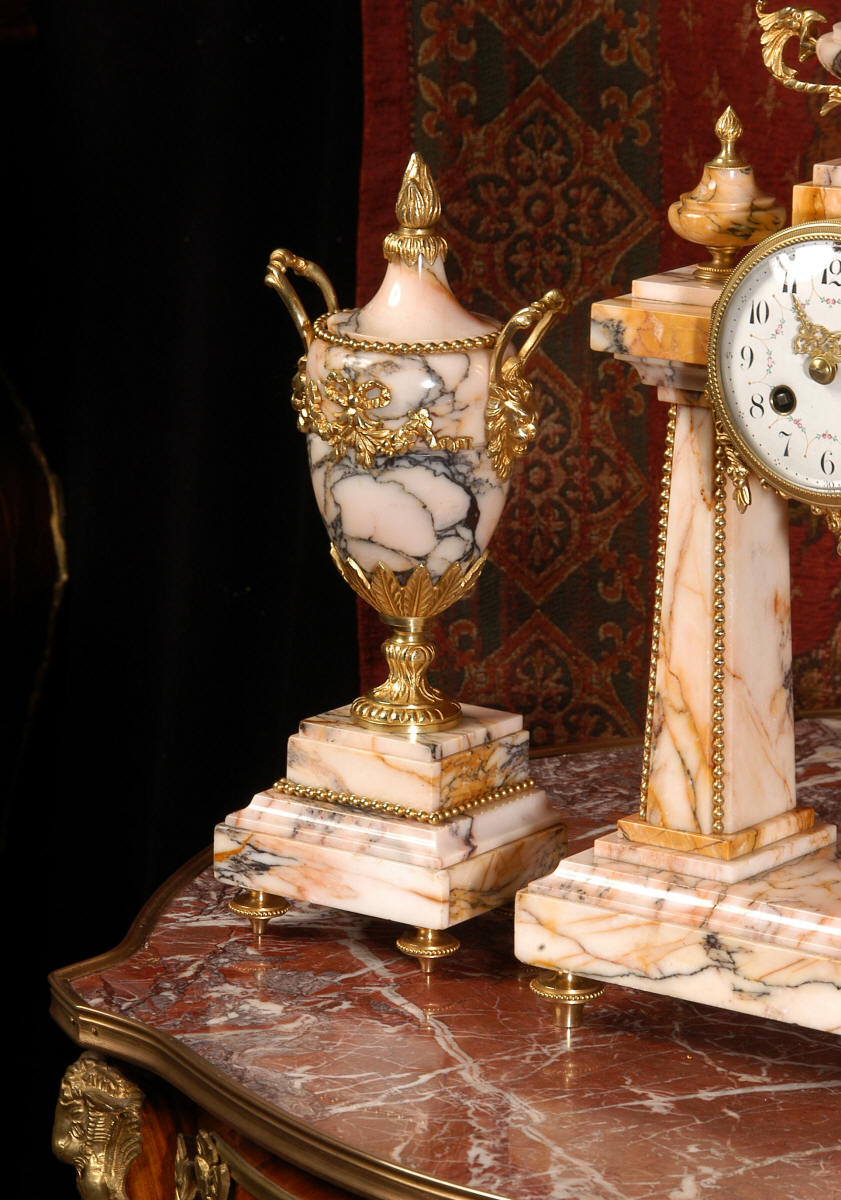 Marble and Ormolu Portico Clock Set