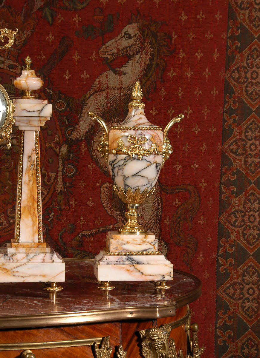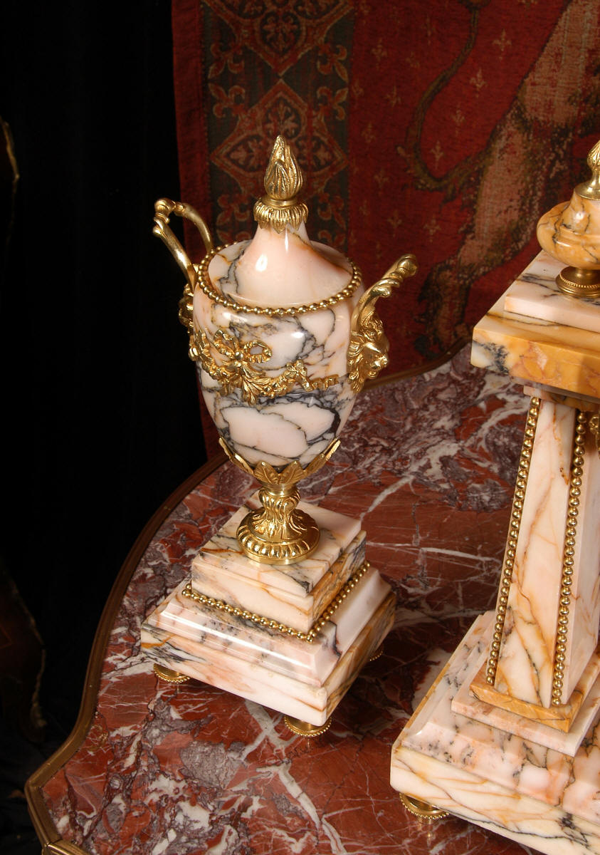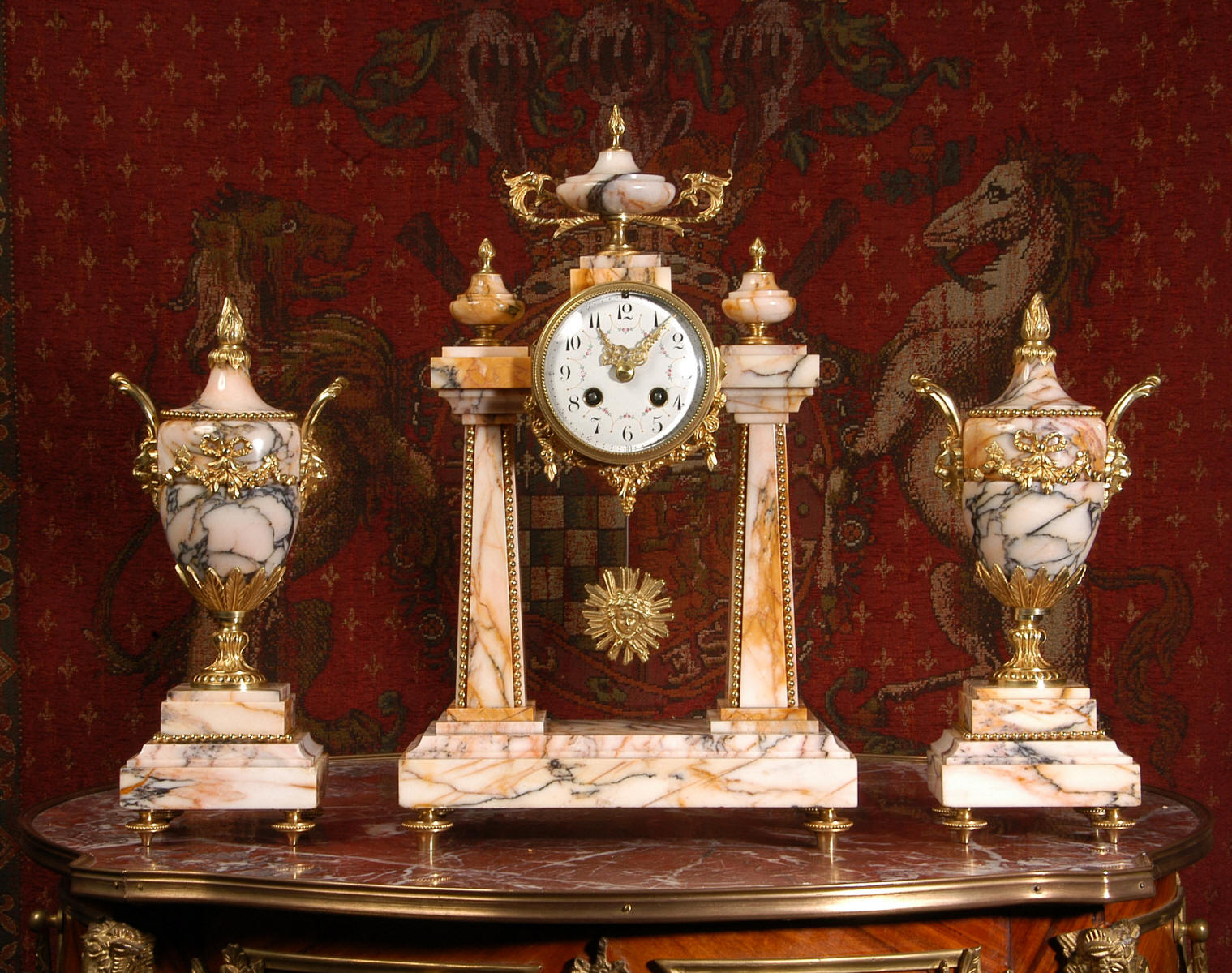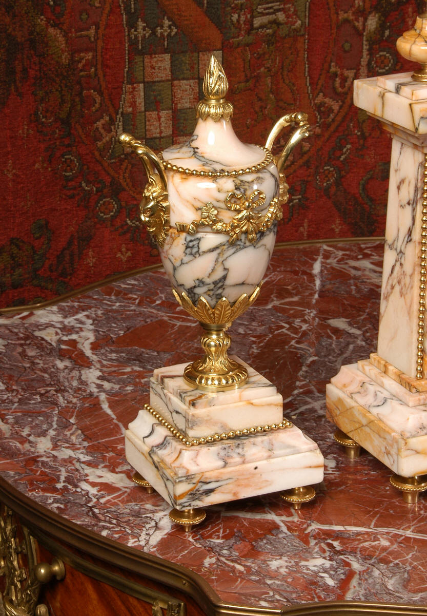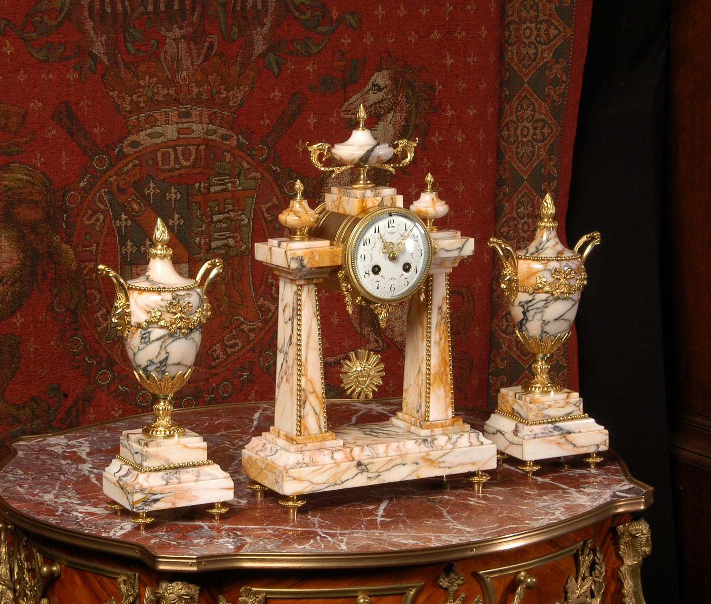 Marble and Ormolu Portico Clock Set