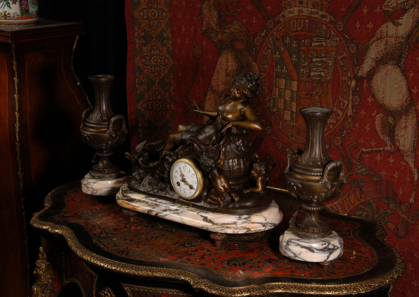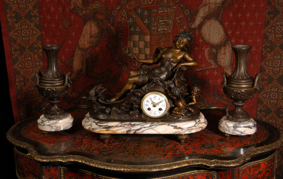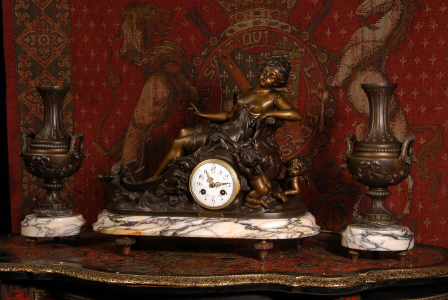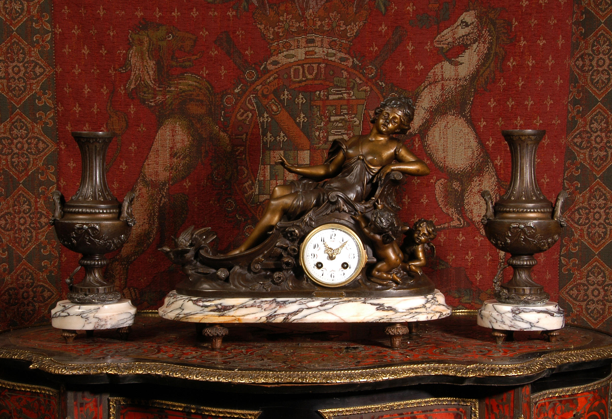 Char De Venus, Large Antique French Clock Set, Japy Freres