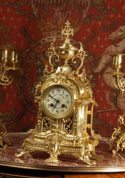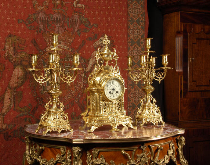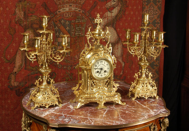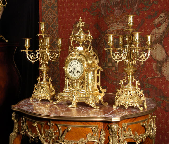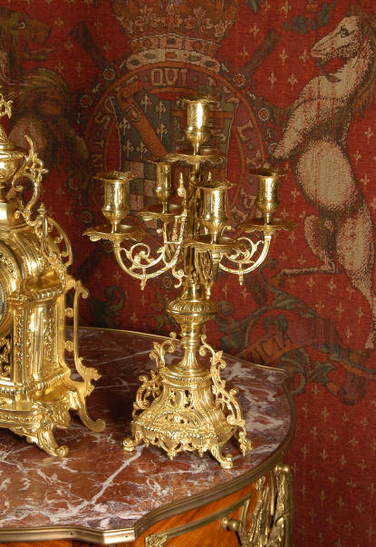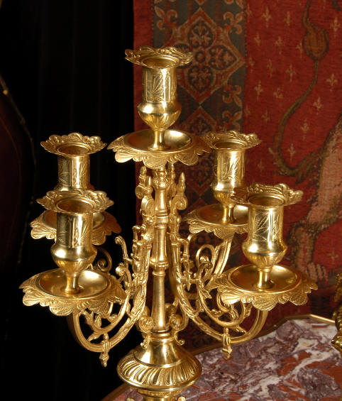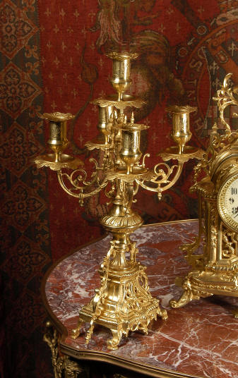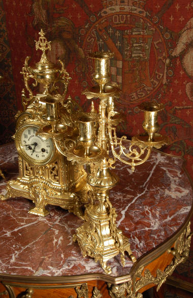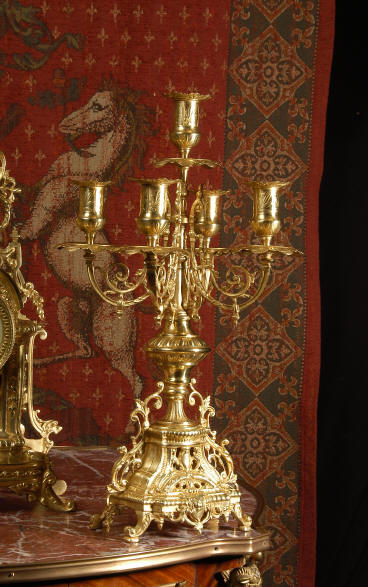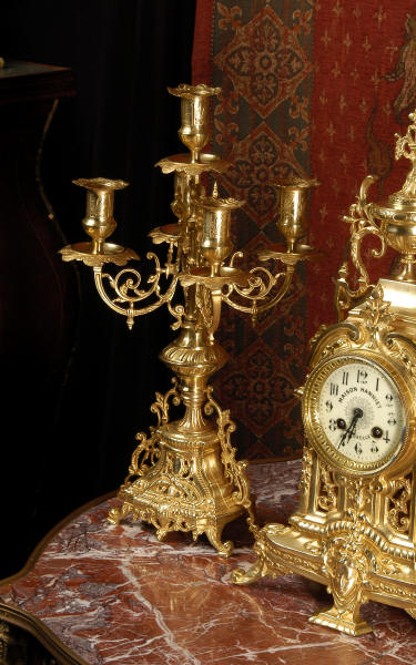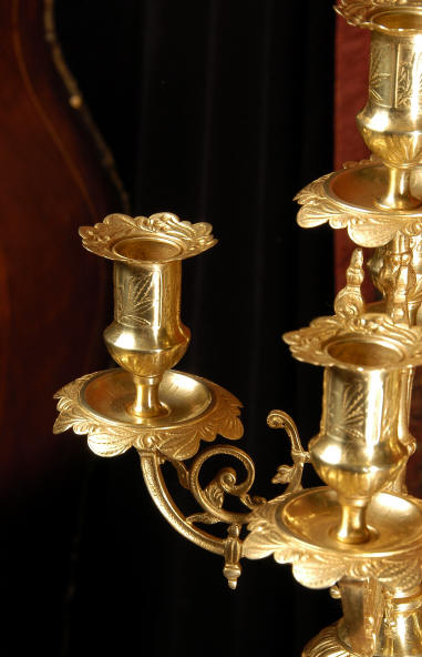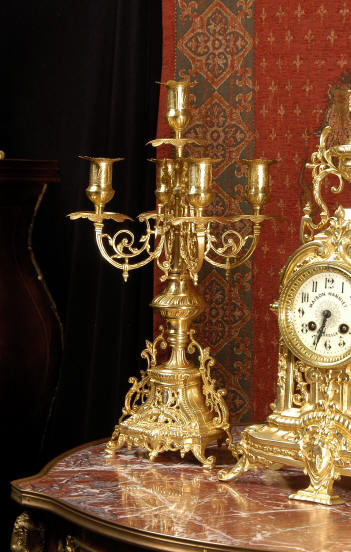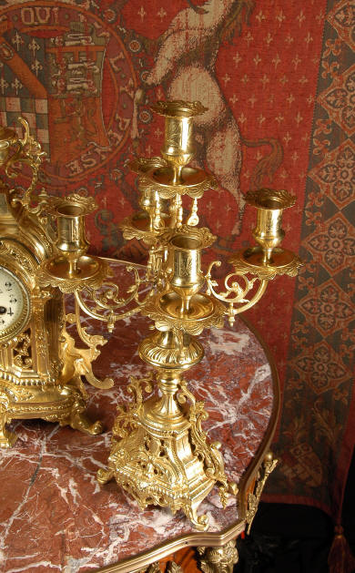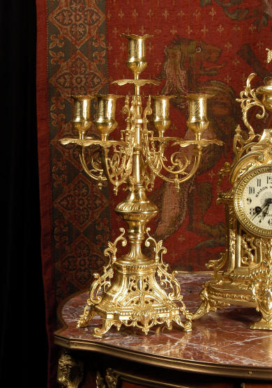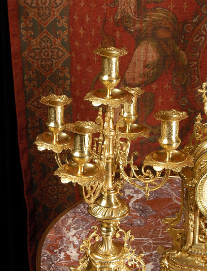 minor wear to the original gilding. Candelabra arms are slightly distorted. The dial