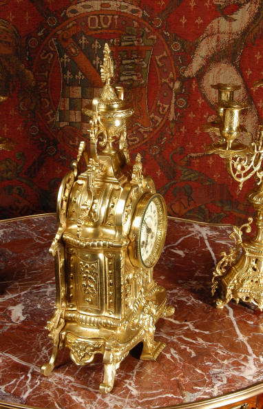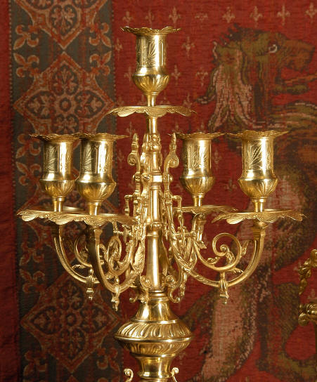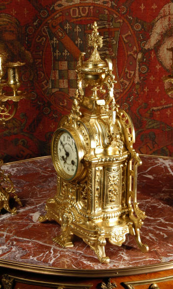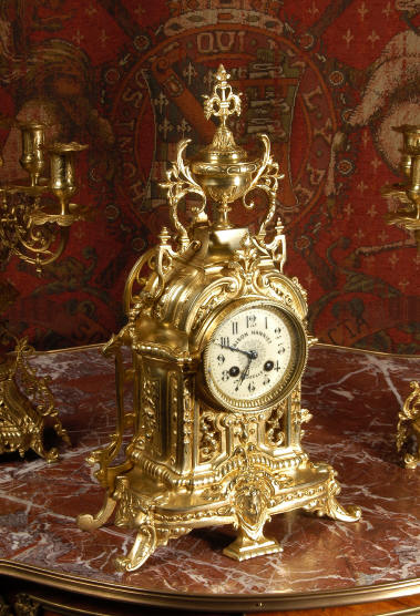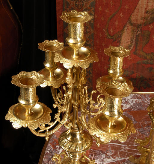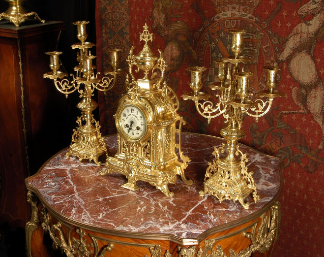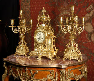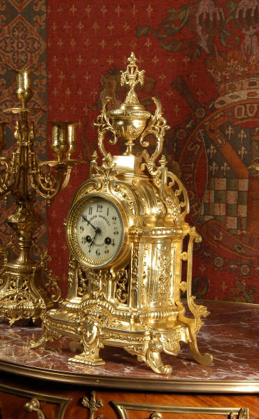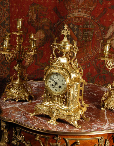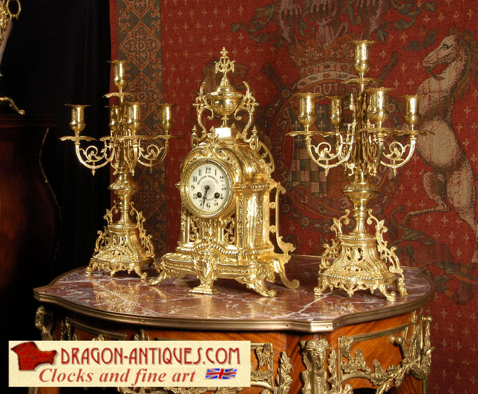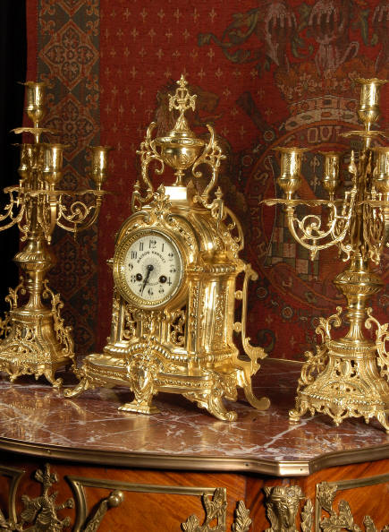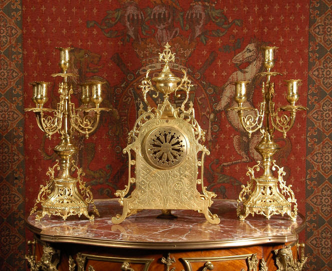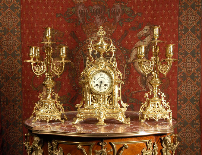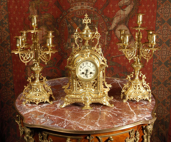 minor wear to the original gilding. Candelabra arms are slightly distorted. The dial