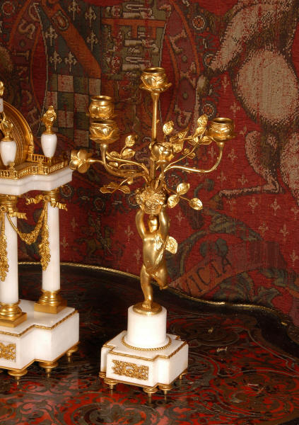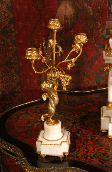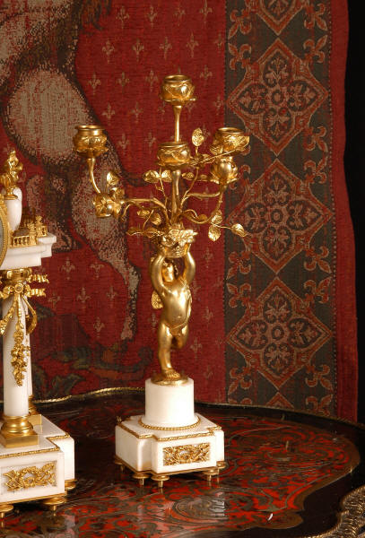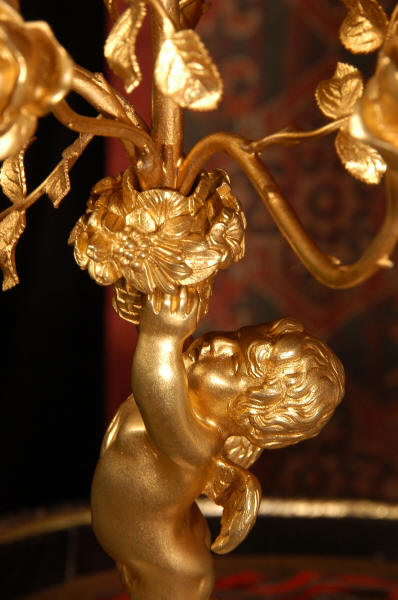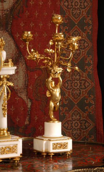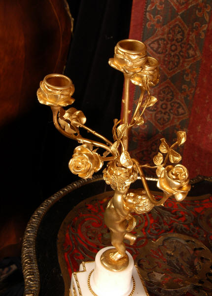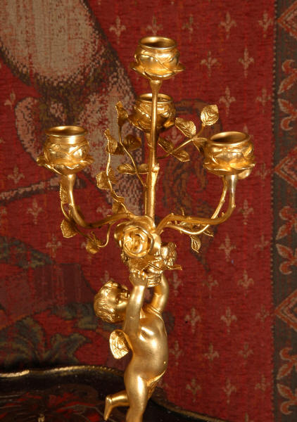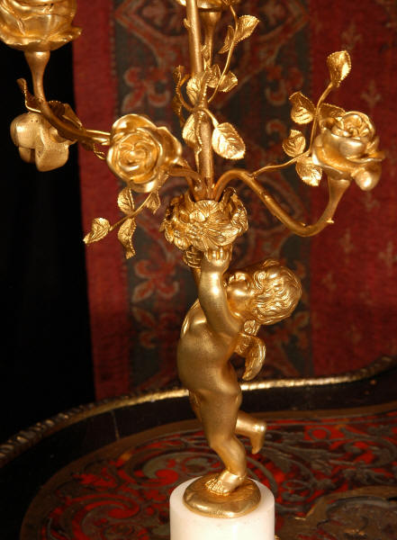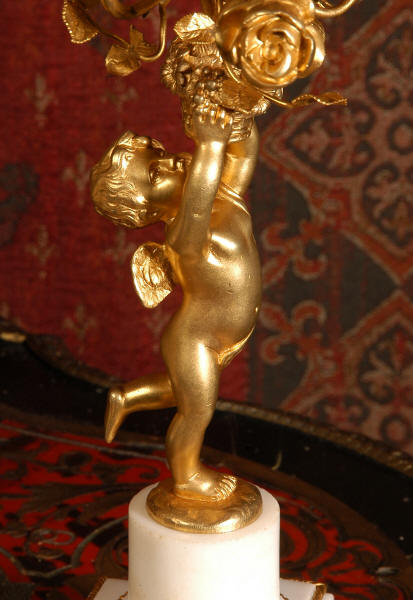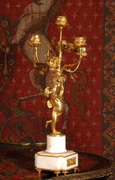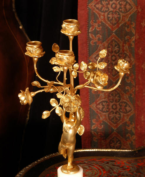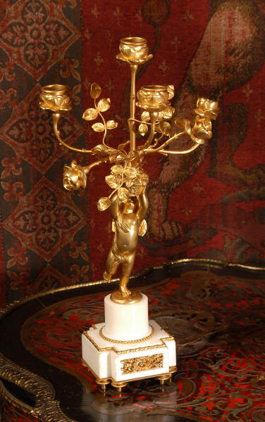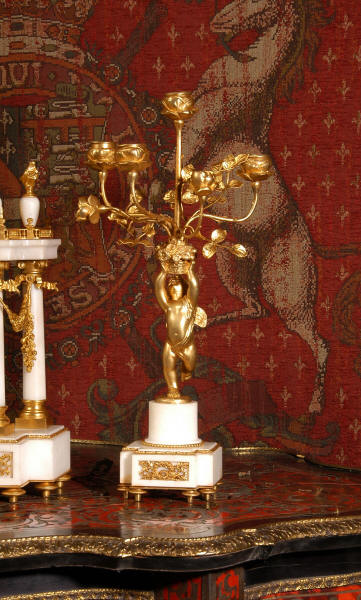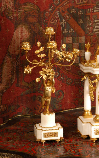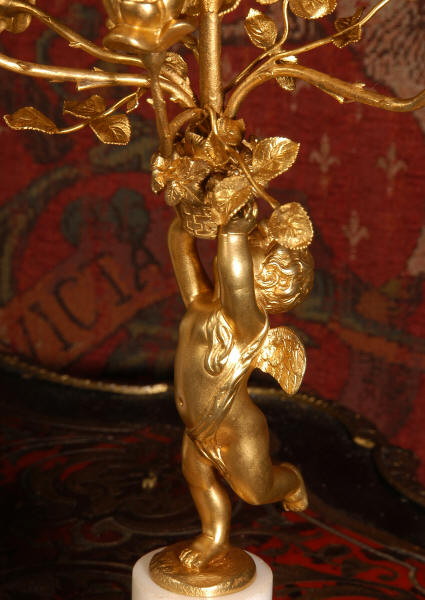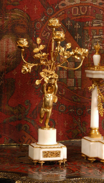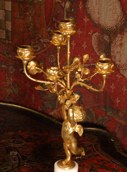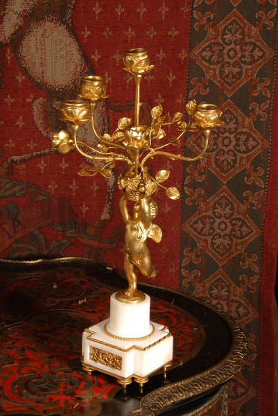 partially hidden by the ormolu mount. One candelabra bas has a small hole in the