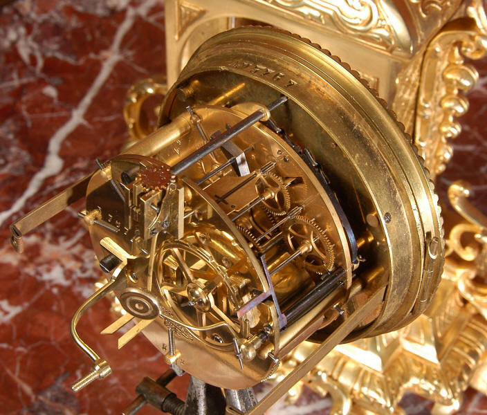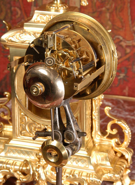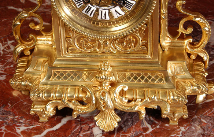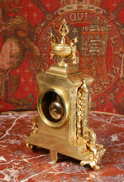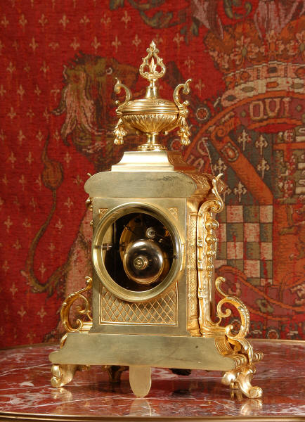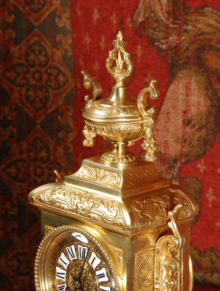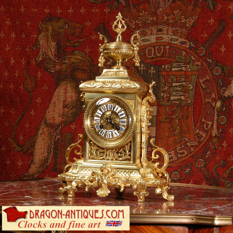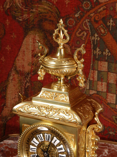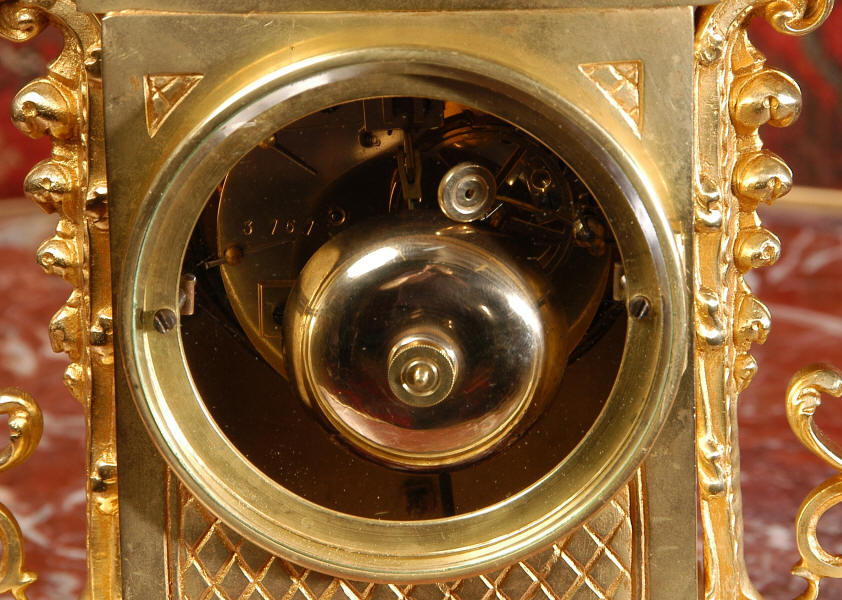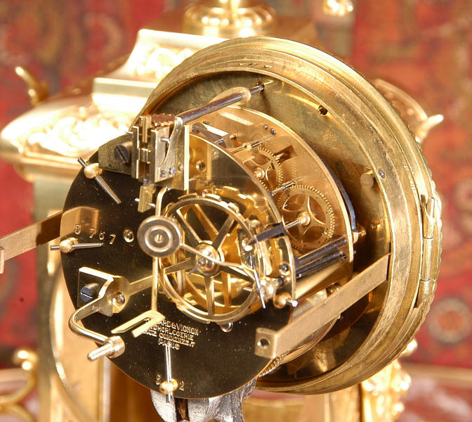 ~ French - Circa 1875 ~ ~~ Excellent condition ~~ A beautiful original antique French Boudoir Table Clock. It is well modelled in the Classical Louis XVI style in gilt brass. it is architectural in shape with a blind fretted panel below the dial and an urn to the top. The dial is also gilt brass and has an engraved minute ring and 12 enamel cartouche letters for the hours. A further cartouche in the centre is signed by the retailer. it is complete with original blued steel hands. The rear door is glazed to allow the movement to be seen if the clock were displayed on a table for example. The French movement is of high quality and has the Paris makers mark of Barrard & Vignon on the movement backplate. Tardy lists the Parisian horlogers, Barrard et Vignon, as operating from rue Neuve Ménilmontant in 1860, and later from rue Commines (see Tardy, Dictionnaire des Horlogers Français, p. 31). It is in excellent clean and running condition having been fully overhauled by our clockmaker. Pendulum is original. It runs for 8 days on one wind and strikes the hours and halves on a bell. Click the video clip below to hear the bell and watch the clock running! Condition of the case is