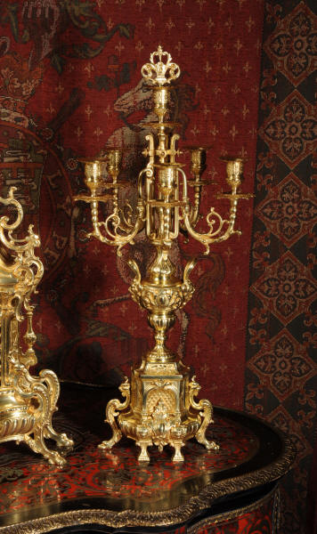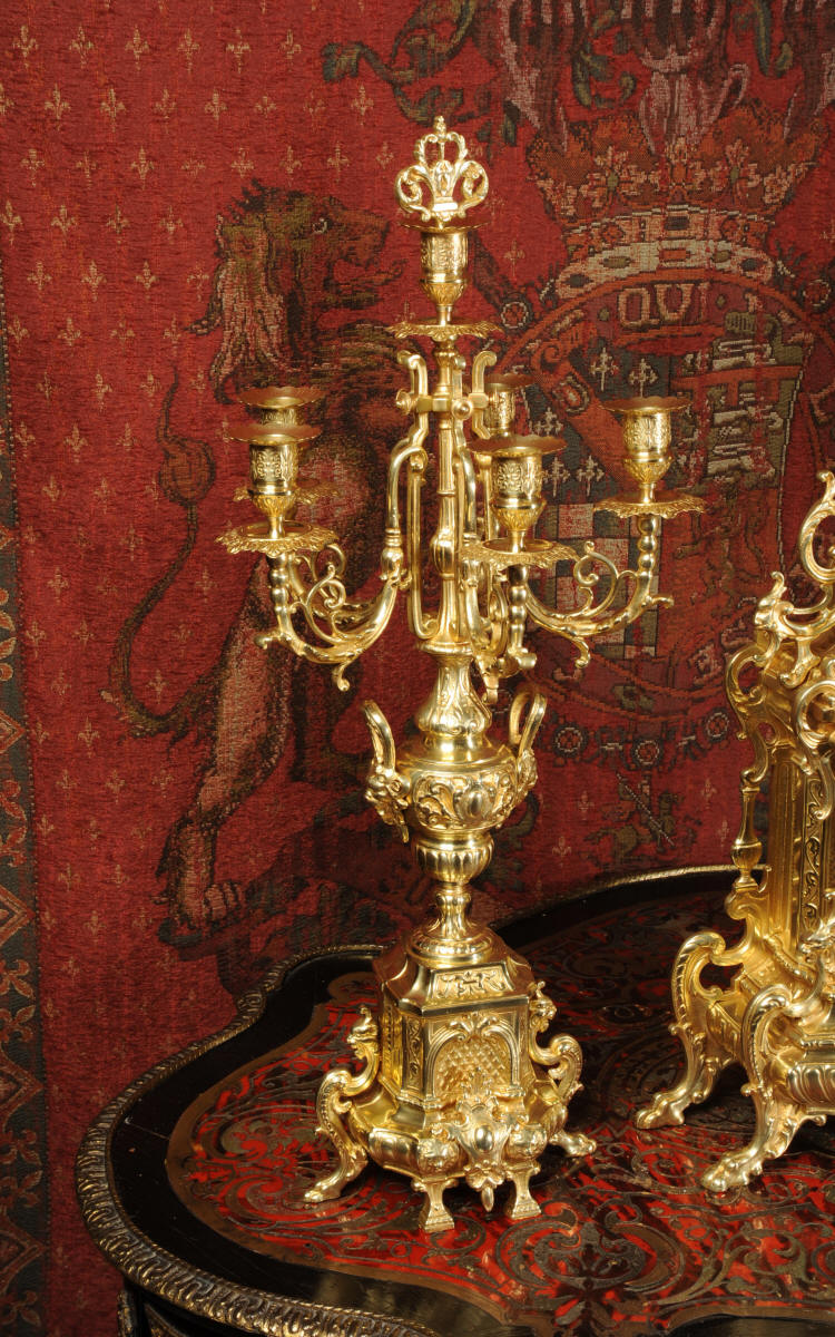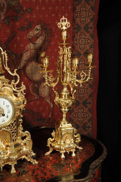 Antique French Gothic Candelabra Clock Set by Japy Freres