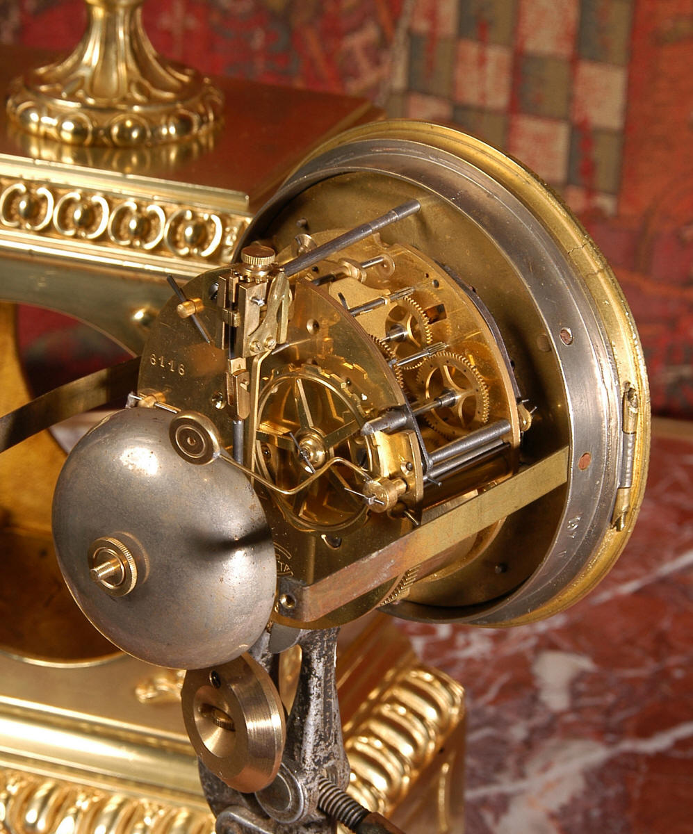 The French movement is of high quality and is in excellent clean and running condition having been fully serviced by our clockmaker. The retailer / clockmakers mark is on the movement backplate. Pendulum is a replacement. It runs for 8 days on one wind and strikes the hours and halves on a bell. Click the video clip below to hear the bell and watch the clock running! Condition of the case is excellent with clean and bright finish and there are no losses. There is some very minor wear on the high spots and some occasional marks. The dial is also in very good condition, just some fading to the cartouche numbers and a light scratch on the number 12. Complete with pendulum, bell and a suitable key. Full setting up instructions supplied if required.