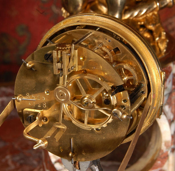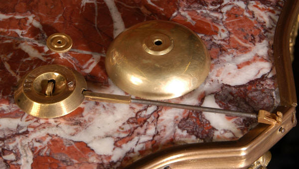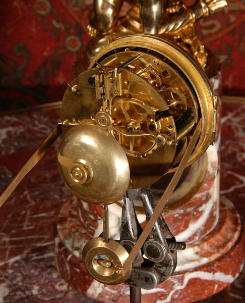 The French movement is of high quality and is in excellent clean and running condition having been fully overhauled by our clockmaker. Pendulum is original. It runs for 8 days and strikes the hours and halves on a bell. Click the video clip below to hear the bell and watch the clock running!