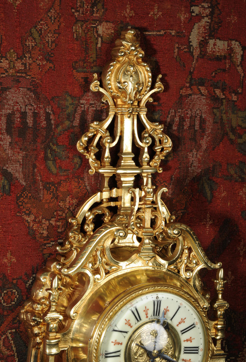 The French movement has the Japy Freres 'Grande Medaille D' Honneur' mark on the movement backplate and is of excellent quality. It is in excellent clean and running order having been fully overhauled by our clockmaker. Pendulum is original. Duration of the movement is 8 days between winding and it sounds the hours and half-hours on a large sonorous bell. Below we have a video of the movement running and striking. Condition of the case is excellent with clean and bright finish and there are no losses. There is some very minor wear to the original gilding. The dial is also in excellent condition with no chips or scratches, a stunning clock to add to your collection.