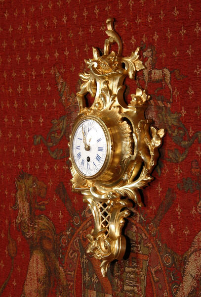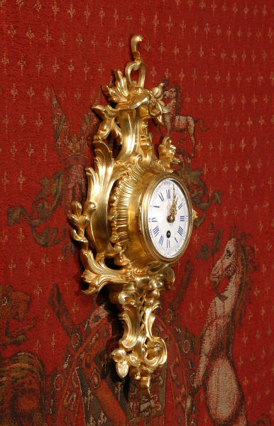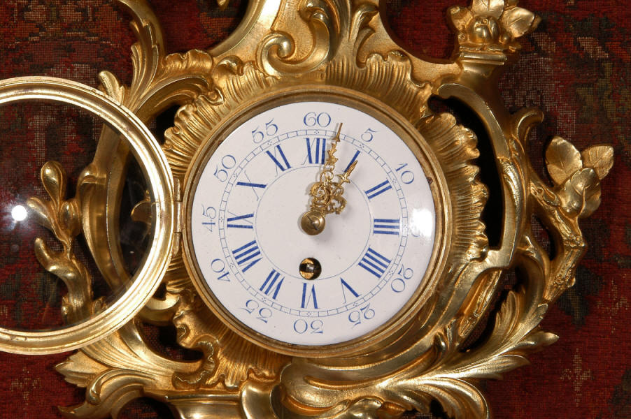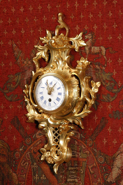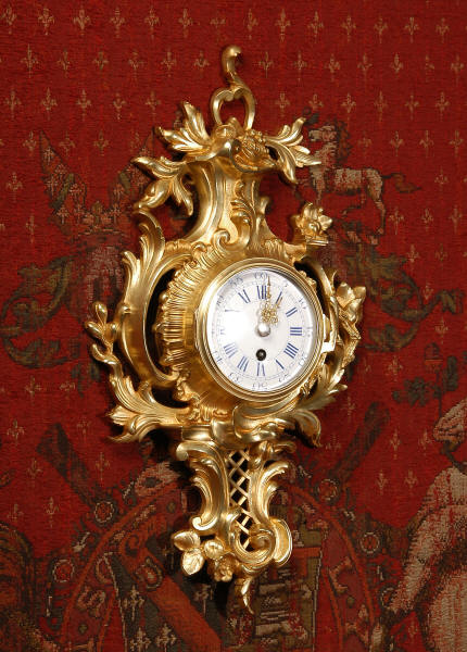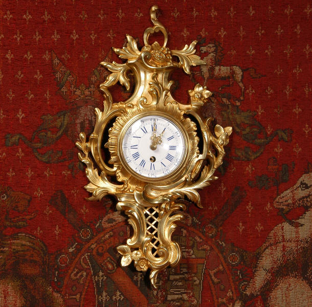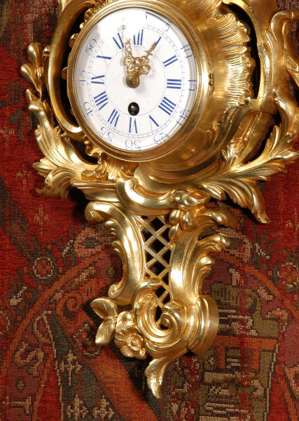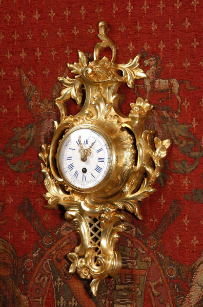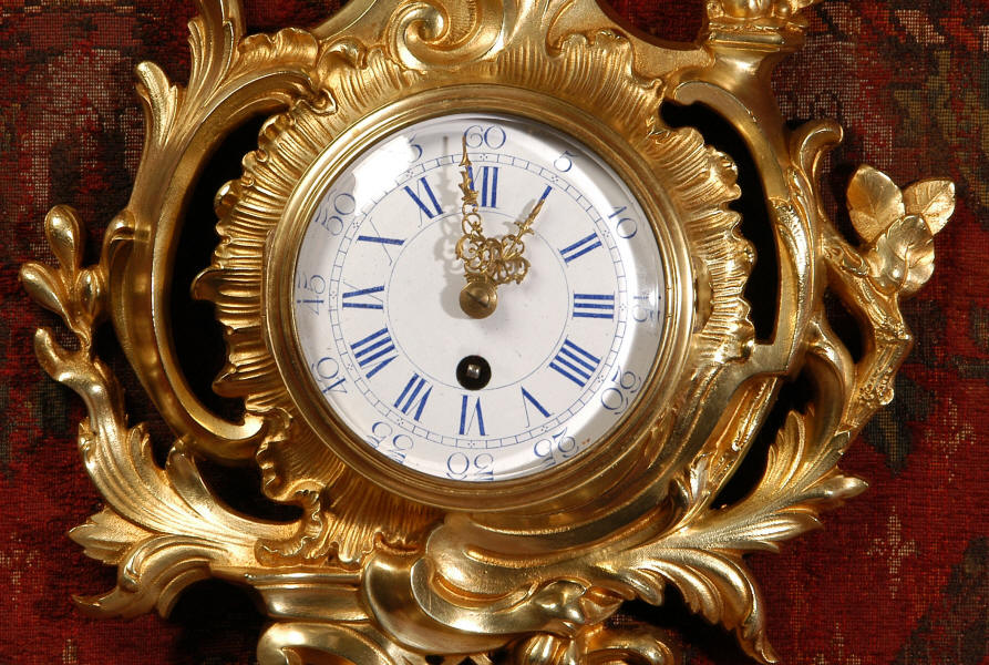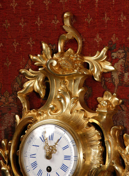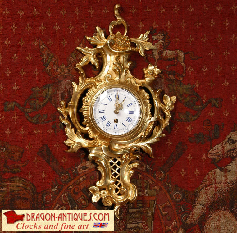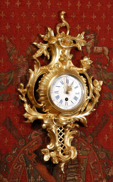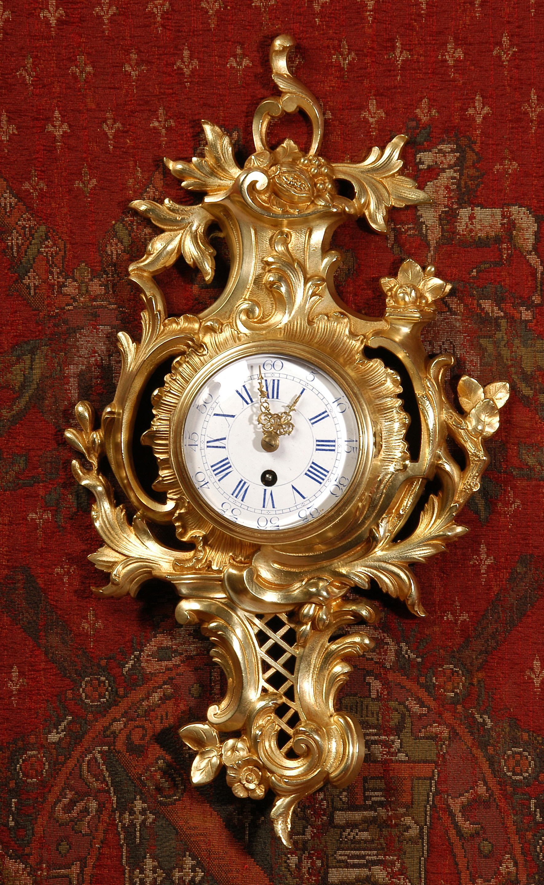 Rococo Cartel clock, classic Rococo asymmetrical shape with 'C' scrolls, foliage