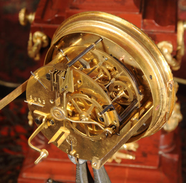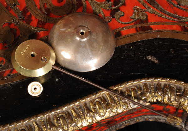 The superb dial is cream enamel with delicately painted floral swags and the original finely fretted gilt brass hands. It has a hobnail bezel with convex bevelled glass. The French movement is by A. D. Mougin and is of high quality. It is in excellent clean and running condition having been fully overhauled by our clockmaker. Pendulum is an old replacement. It runs for 8 days and strikes the hours and halves on a bell. Click the video clip below to hear the bell and watch the clock running!