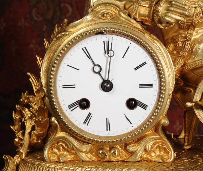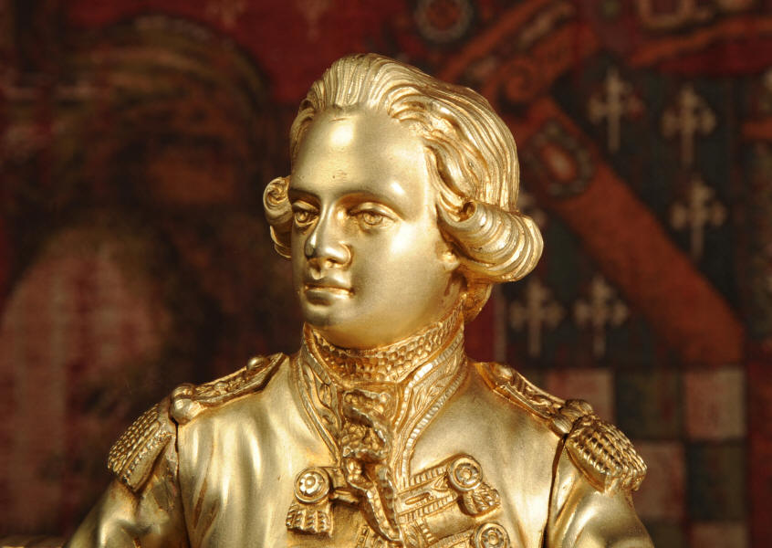 He is beautifully and finely depicted. It is exquisitely detailed and of excellent quality, being gilded bronze rather then the more usual gilt spelter. The original gilding is in stunning condition with hardly any wear and has a lovely bright and clean finish. The clock has a swept base with scroll feet and naval symbols of an anchor to the front.