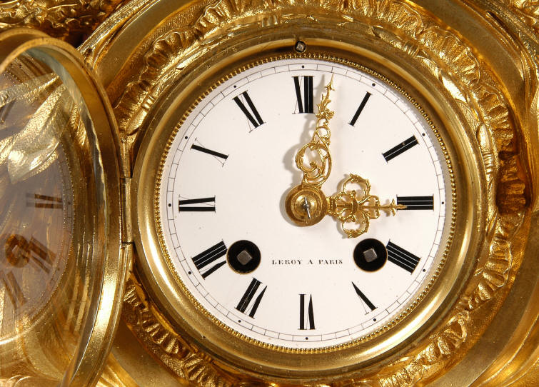 Clockmakers mark Leroy a Paris on the movement backplate and on the dial.