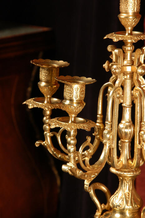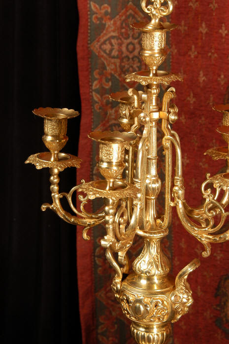 wear and discolouration in places. The candelabra arms are slightly distorted.