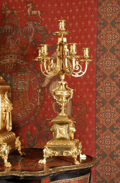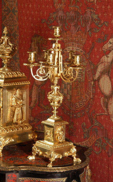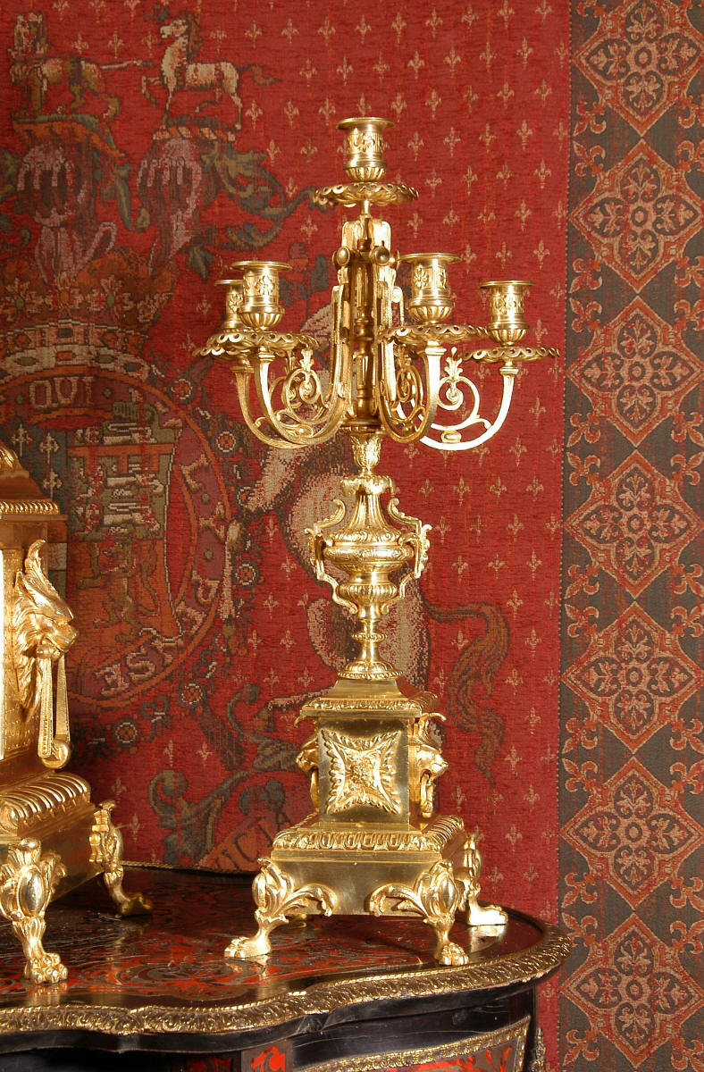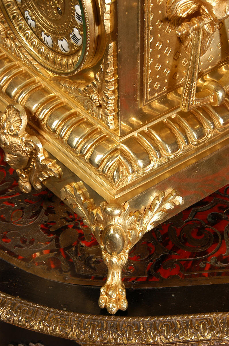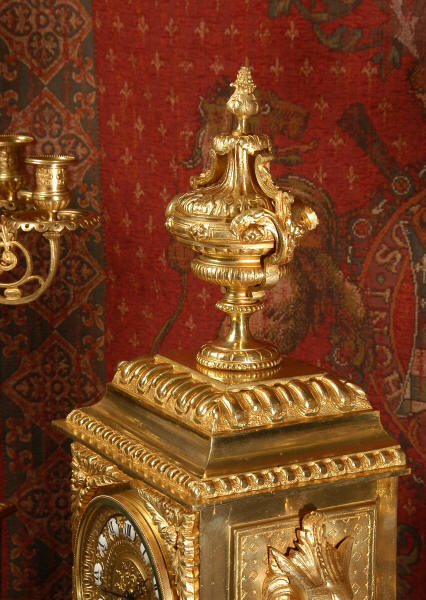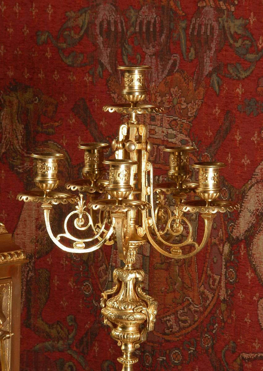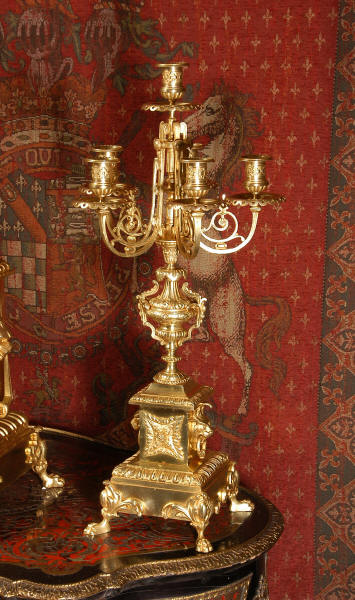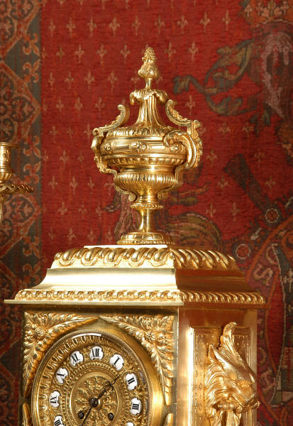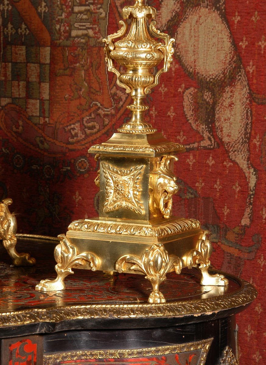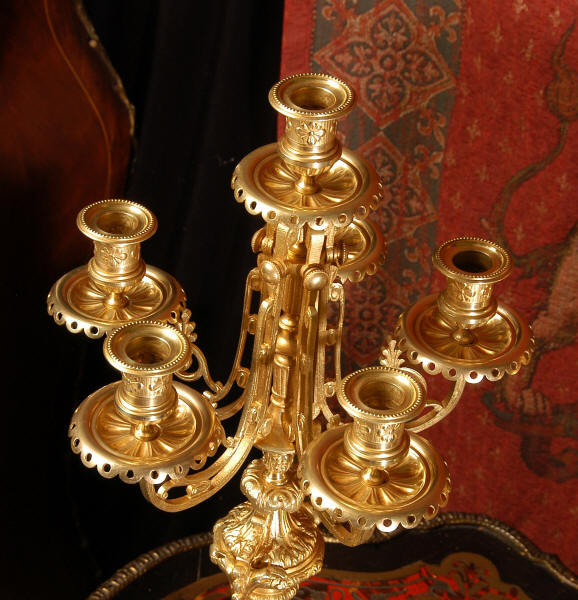 ~ French - Circa 1890 ~ ~~ Excellent condition ~~ A very finely detailed gilt brass clock in excellent condition, much of the original gilding remains which is in lovely bright and clean condition. The style is Baroque. The clock movement is held aloft by cherubim forming the front pillars. The cherubim look back at two winged lions which are tethered. The pendulum is visible swinging below the movement between the cherubim pillars, pendulum is formed as a shield with lions rampant. Above the dial is a typical Baroque broken arch. The back of the top is fretted along with the base and the clock is beautifully detailed and well finished. The dial is enamel on copper with a cast brass centre and is complete with original blued steel hands. The French movement is of very high quality and is in excellent clean and running condition having been fully serviced by our clockmaker. Pendulum is original. It runs for 8 days and strikes the hours and halves on a bell. Click the video clip below to hear the bell and watch the clock running! Condition of the case is