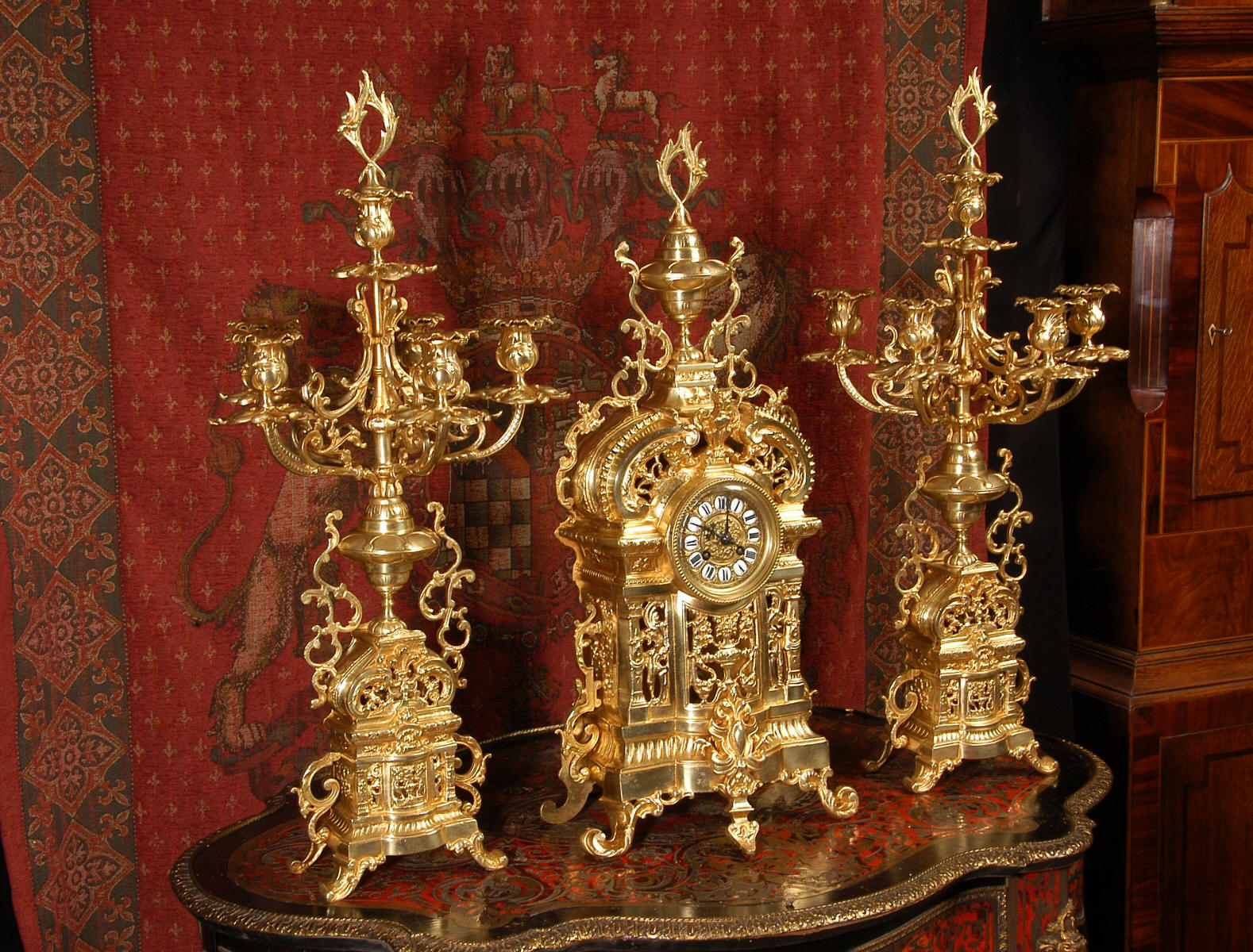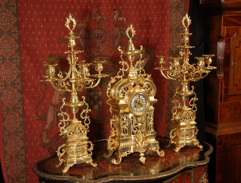 large clock set with a superb original gild. Using our secure server ~~ or ~~ £3245 English Pounds Sterling Shipping within UK £30 Shipping to USA / Europe £195 by air fully insured World wide shipping - £295 by air fully insured stock code: RSC2314