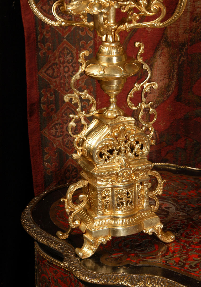 flame finial. Candelabra have matching original flame finial snuffers and five