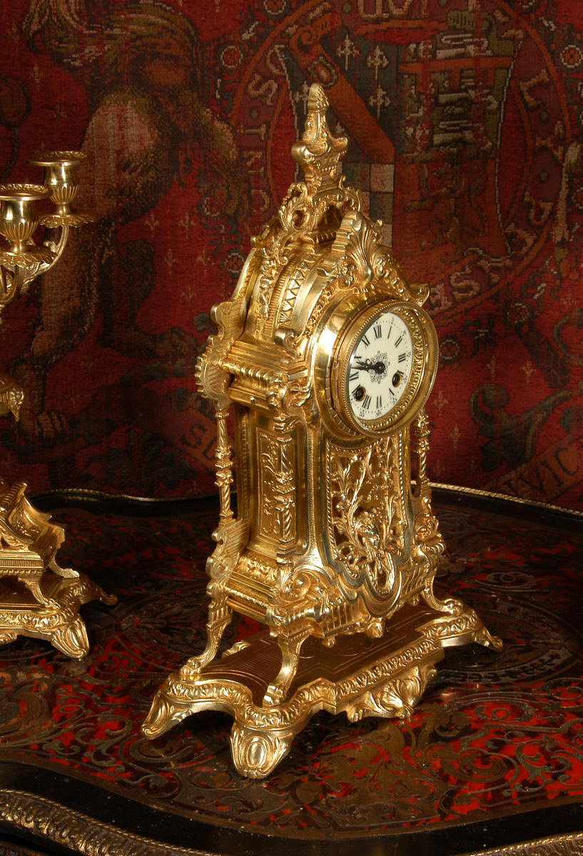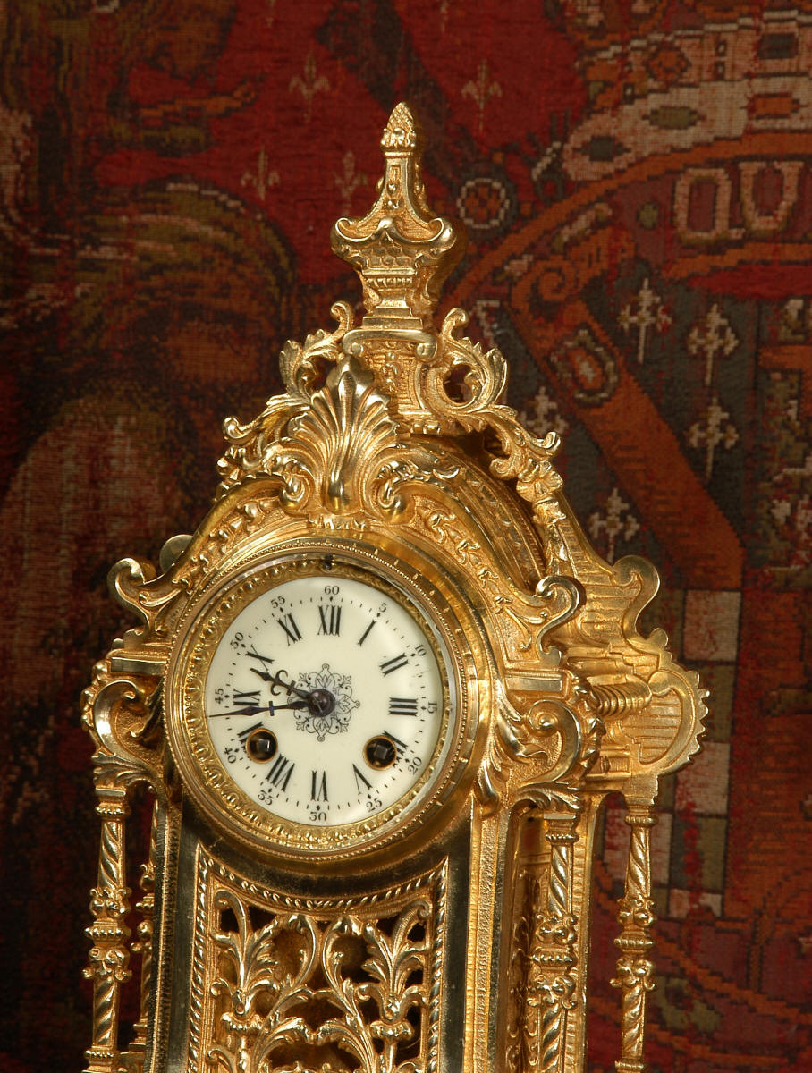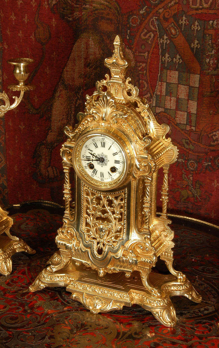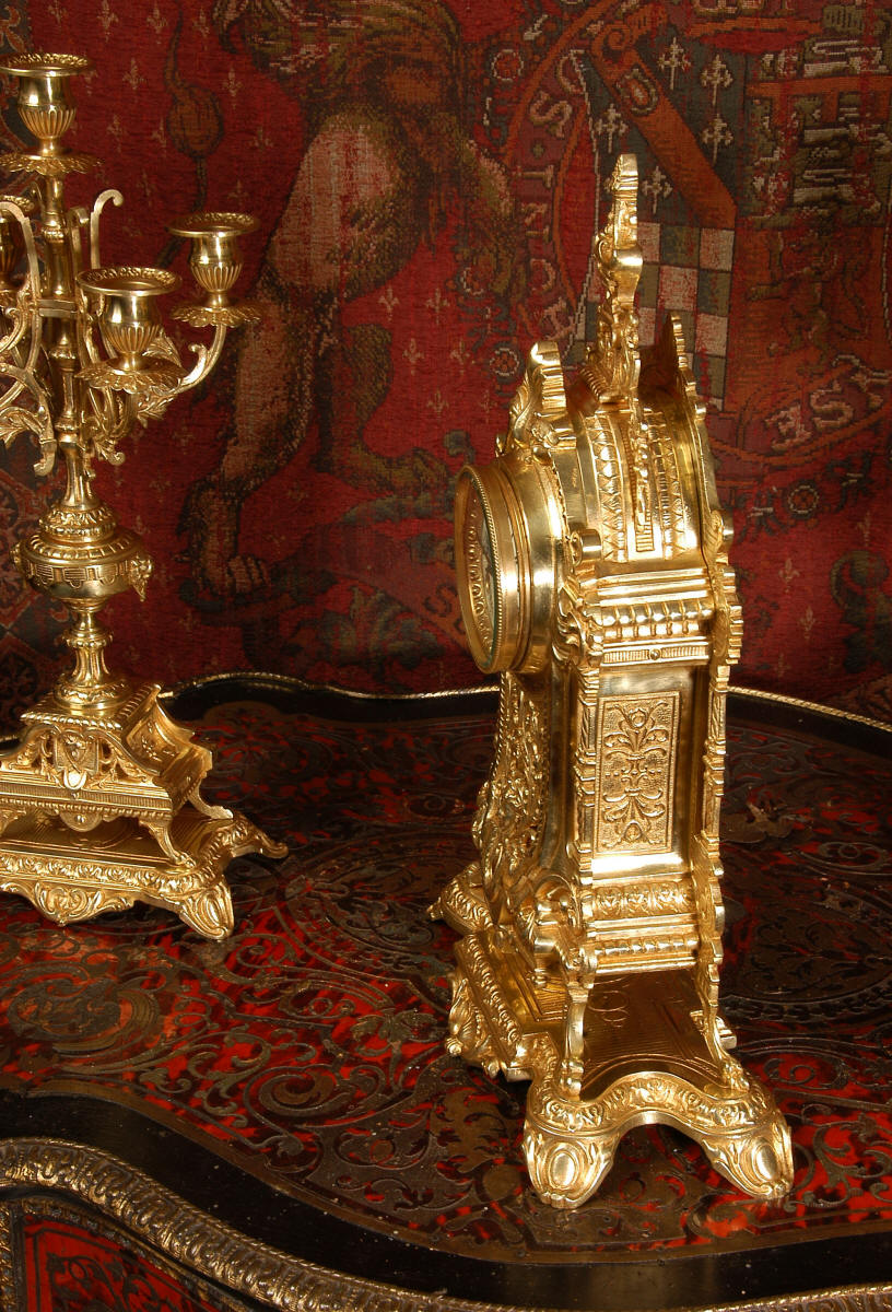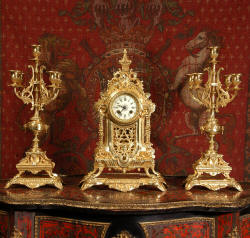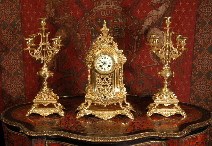 XVI Gilt Brass Clock Set ~ French