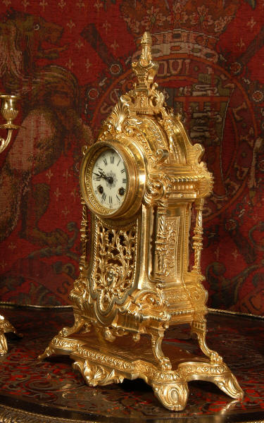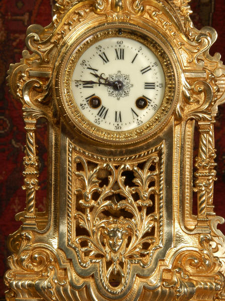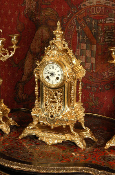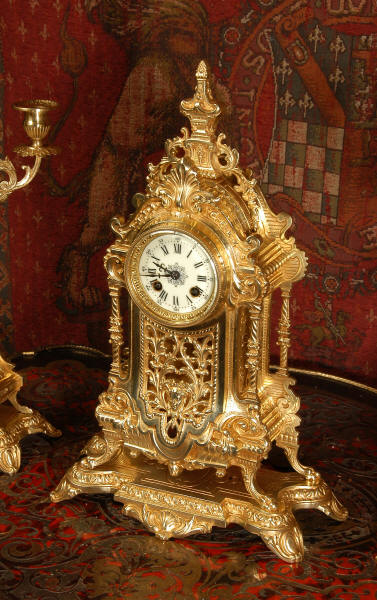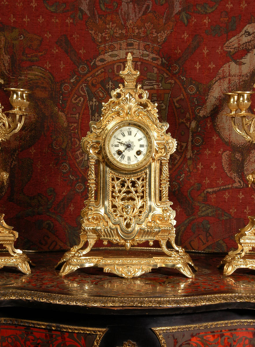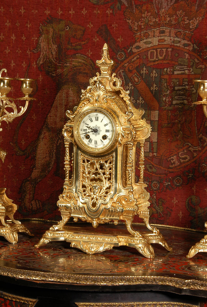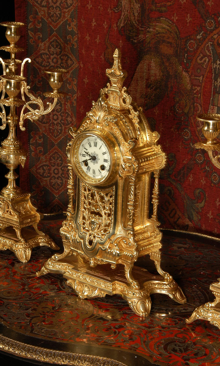 XVI Gilt Brass Clock Set ~ French