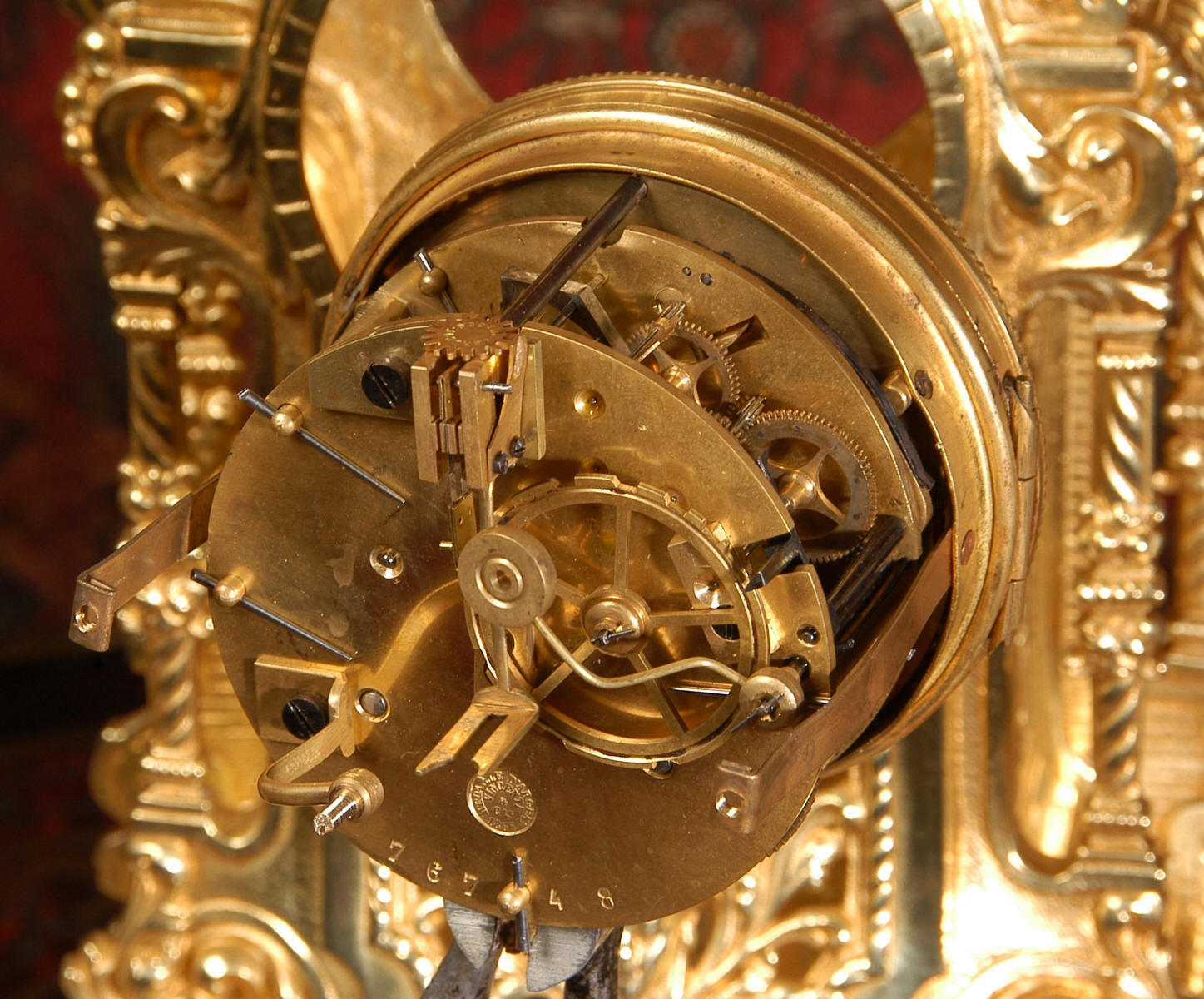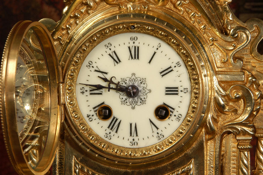 A very finely detailed, original antique French gilt brass clock in excellent