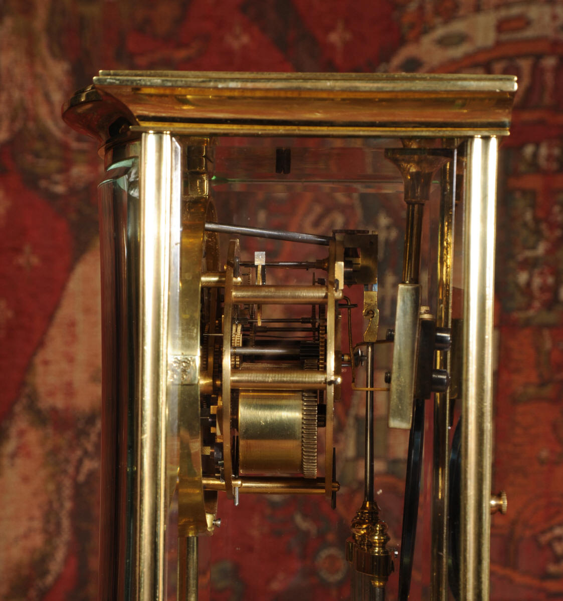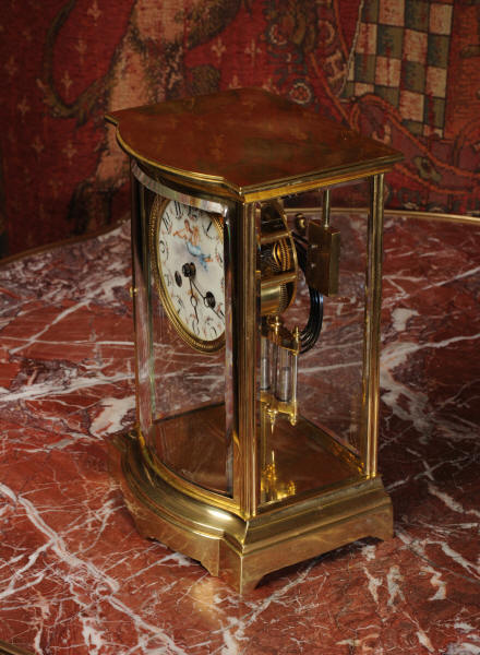 Freres Antique French Bow Front Four Glass Crystal Regulator