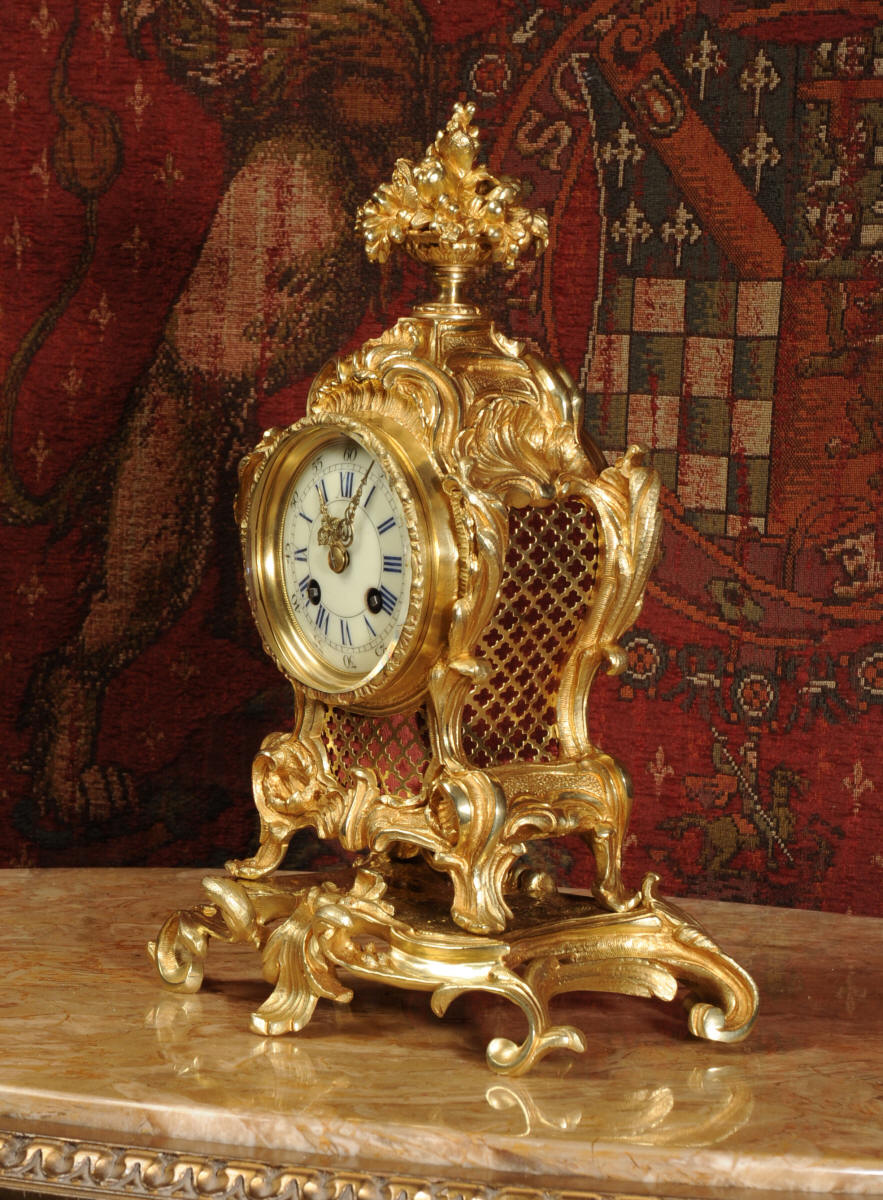 Clock ~ Stunning Rococo Ormolu Boudoir Table Clock by A. D. Mougin