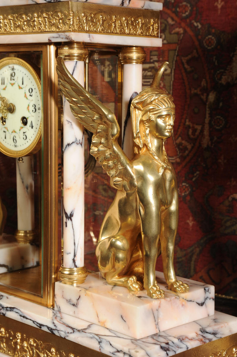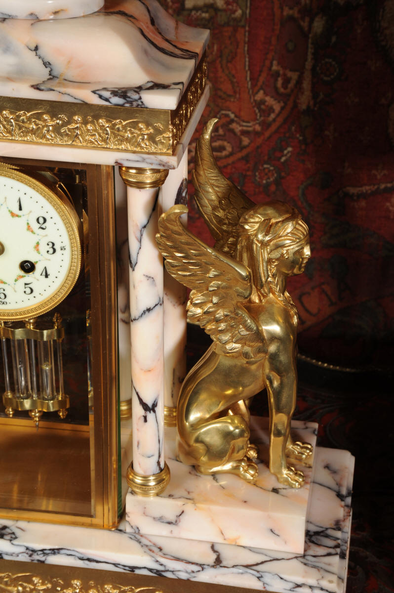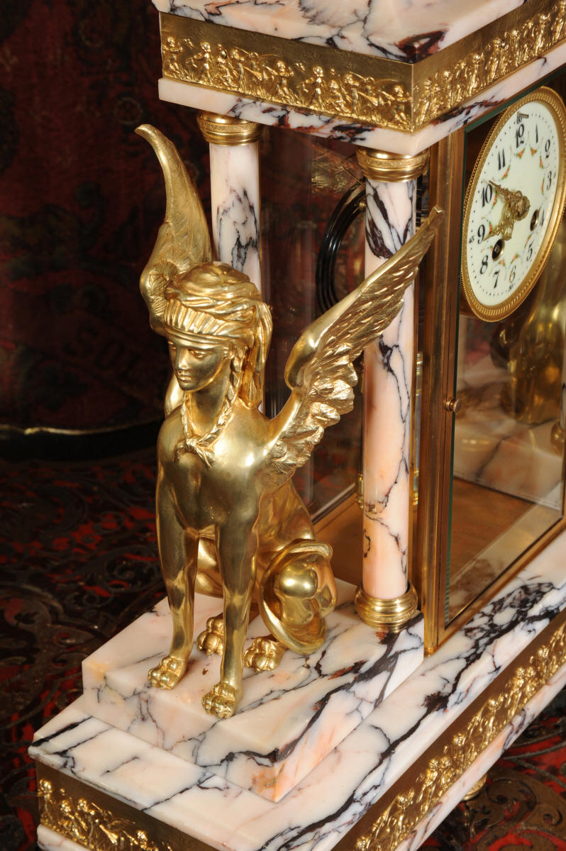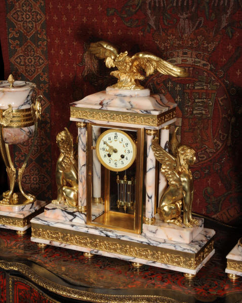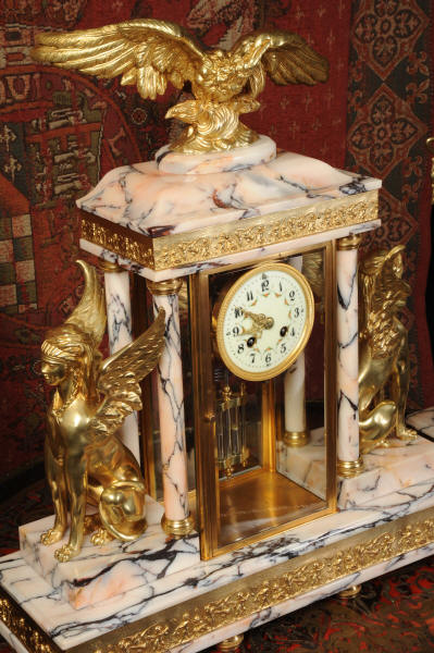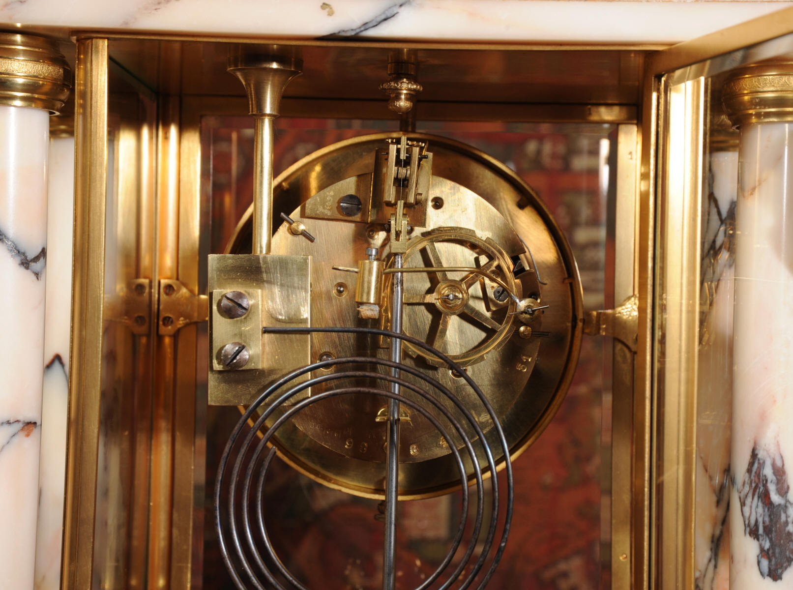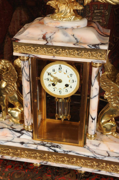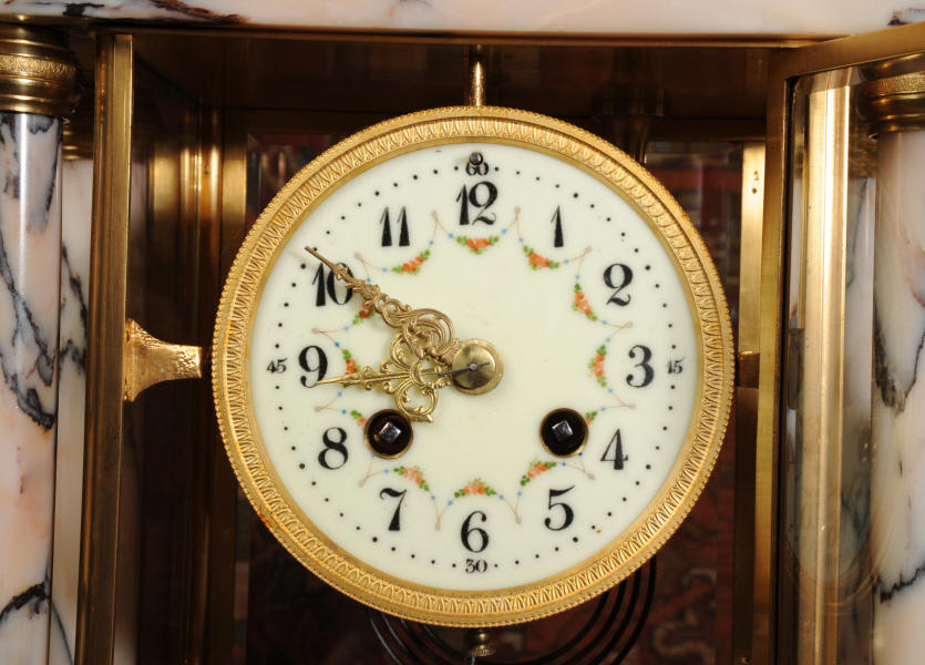 Clock Set ~ Ormolu and Specimen Marble Four Glass Crystal Regulator