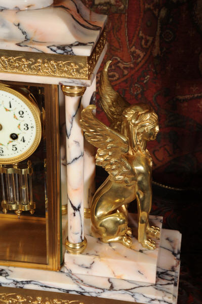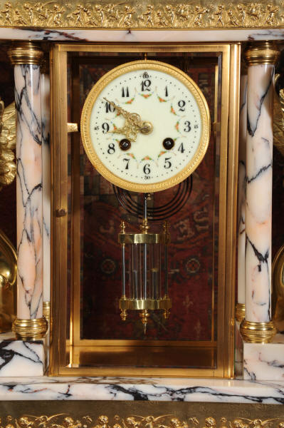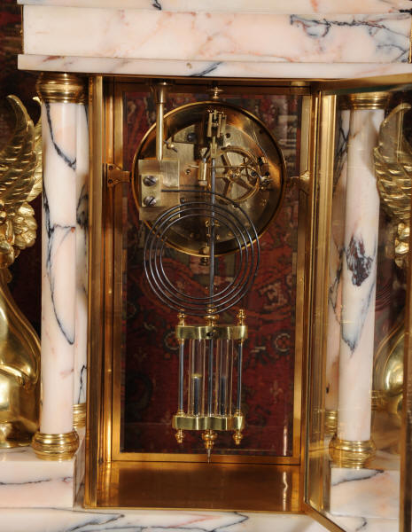 The French movement is of high quality and is in excellent clean and running condition having been fully overhauled by our clockmaker. The mercury compensated pendulum is original, there is a slight discolouration to one mercury tube. It runs for 8 days and strikes the hours and halves on a bell. Click the video clip below to hear the bell and watch the clock running!