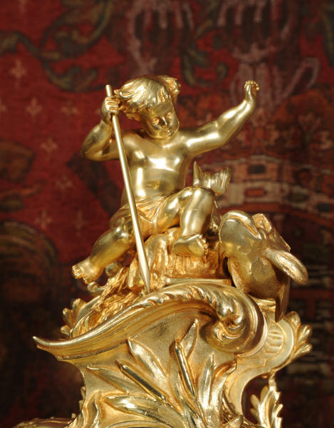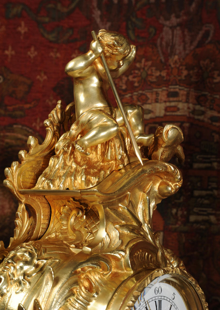 Antique Clock Set by Japy Freres Cherub with Dolphin