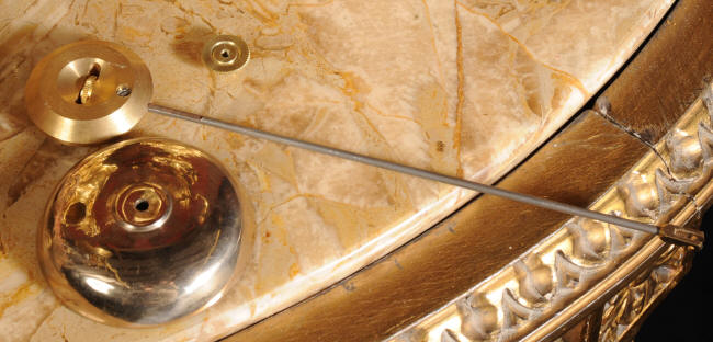 The French movement is by Japy Freres and is of high quality. The Japy Freres mark is on the movement backplate. It is in excellent clean and running condition having been fully overhauled by our clockmaker. Pendulum is a replacement. It runs for 8 days and strikes the hours and halves on a bell. Click the video clip below to hear the bell and watch the clock running!