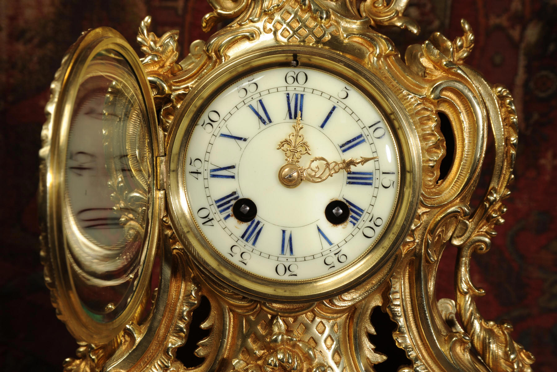 The dial is the most sought after cream enamel with blue lettering and separate minute ring. It has finely fretted gilt brass hands and convex glass fitted to the Rococo bezel.