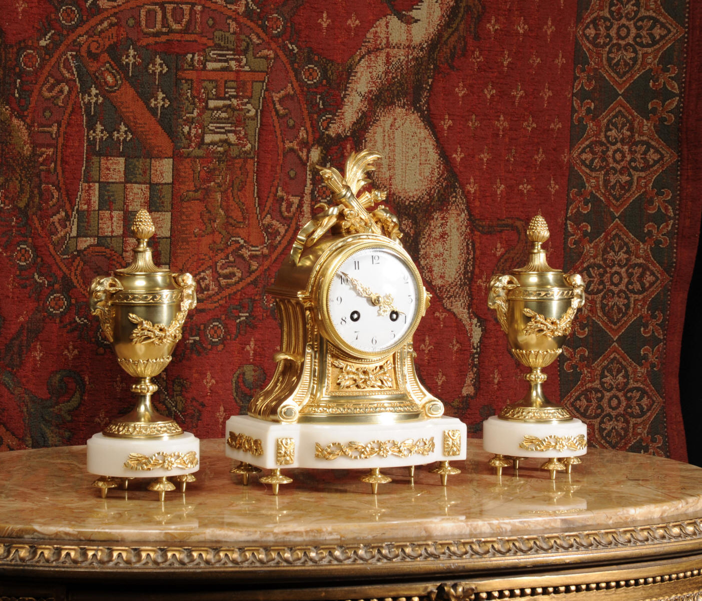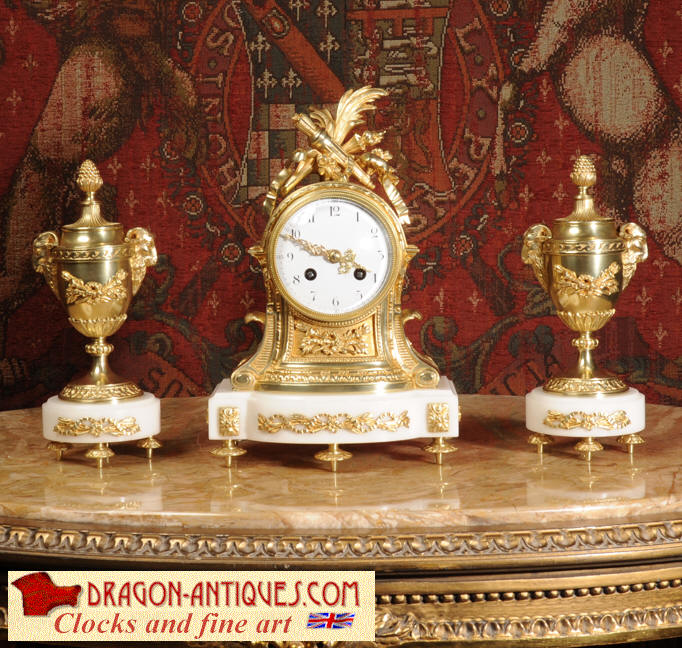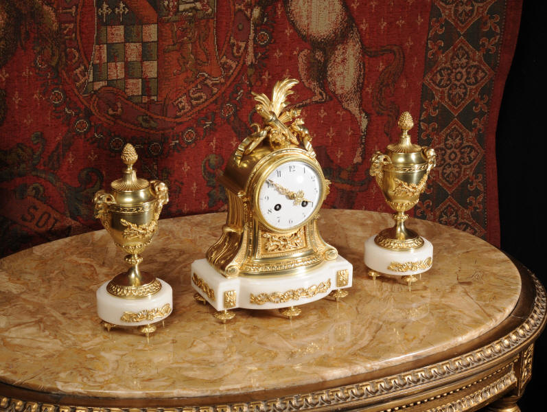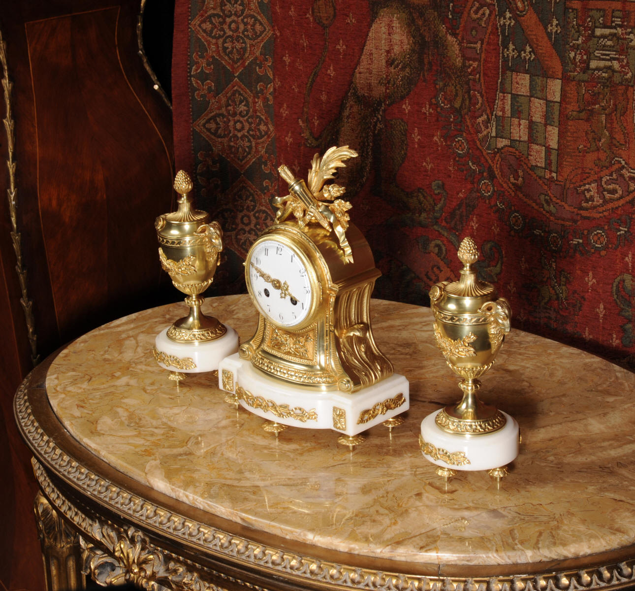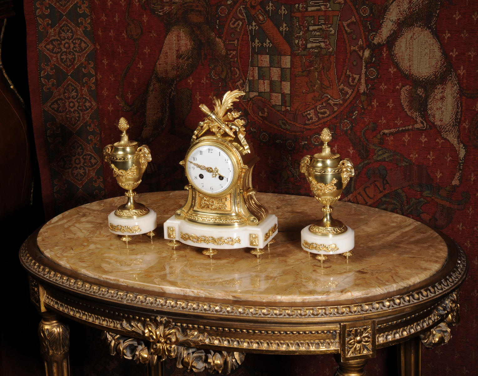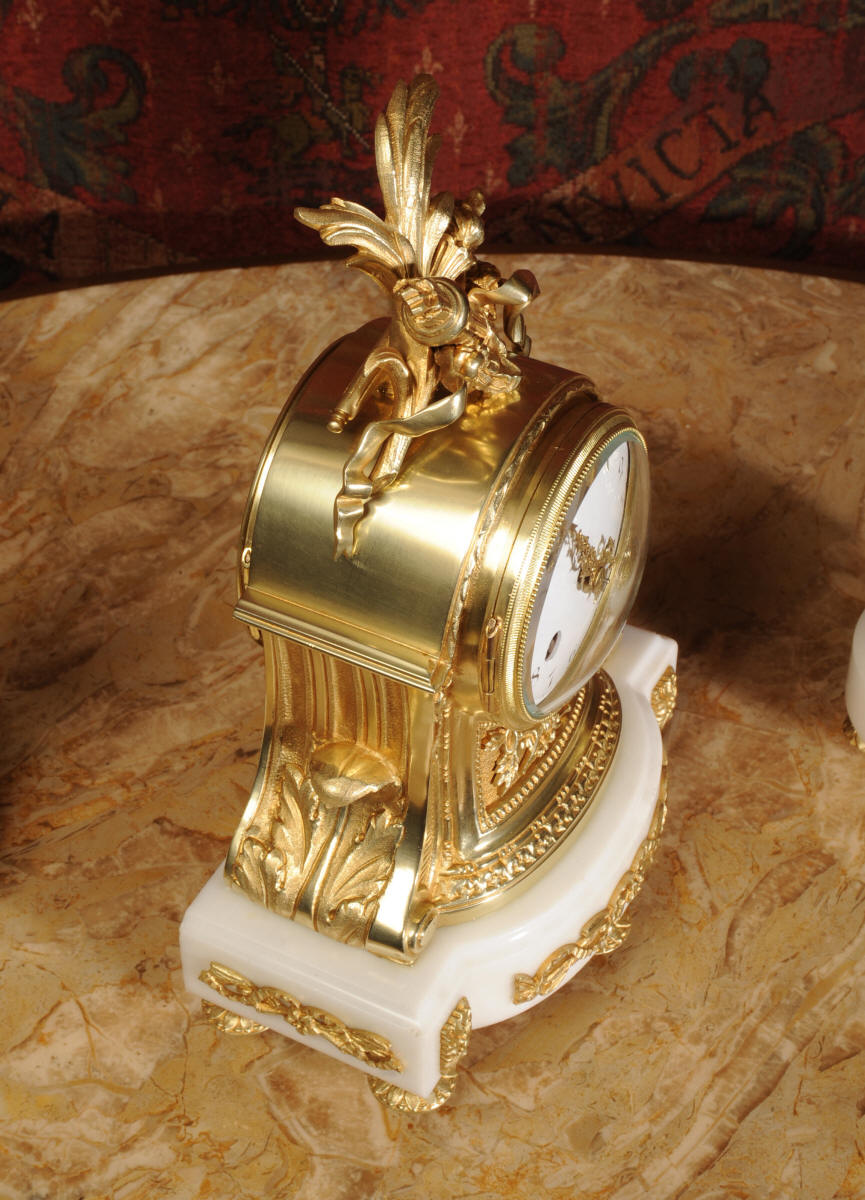 Clocks ~ Stunning White Marble and Ormolu Boudoir Clock Set
