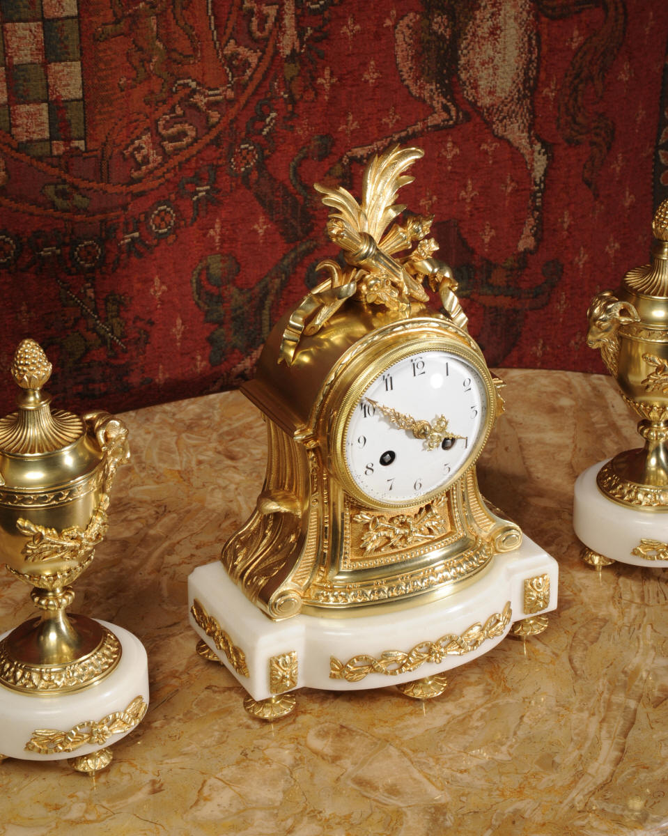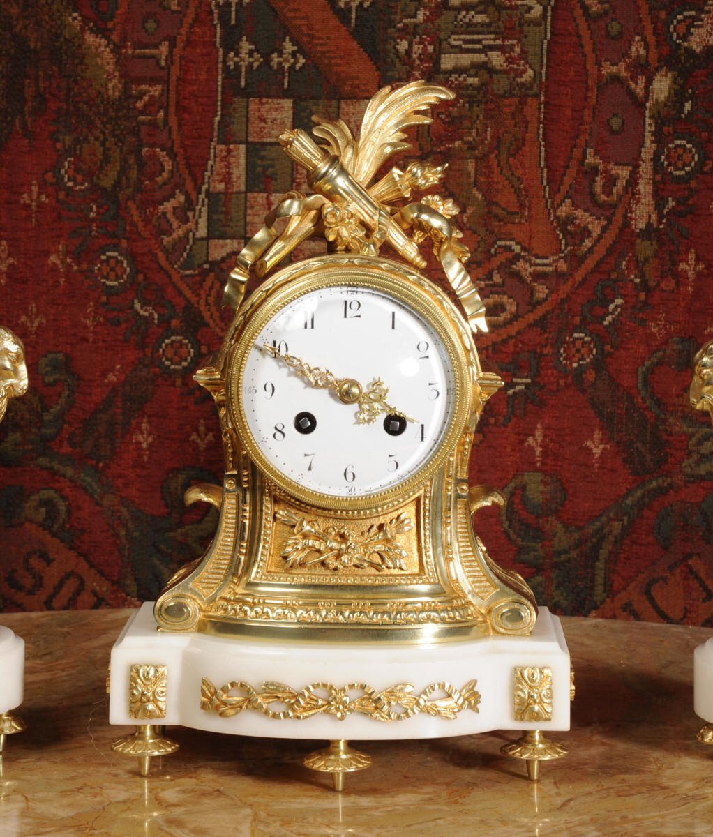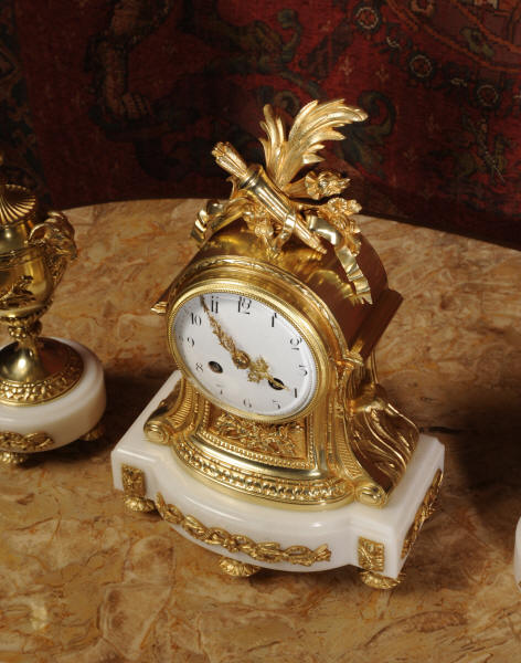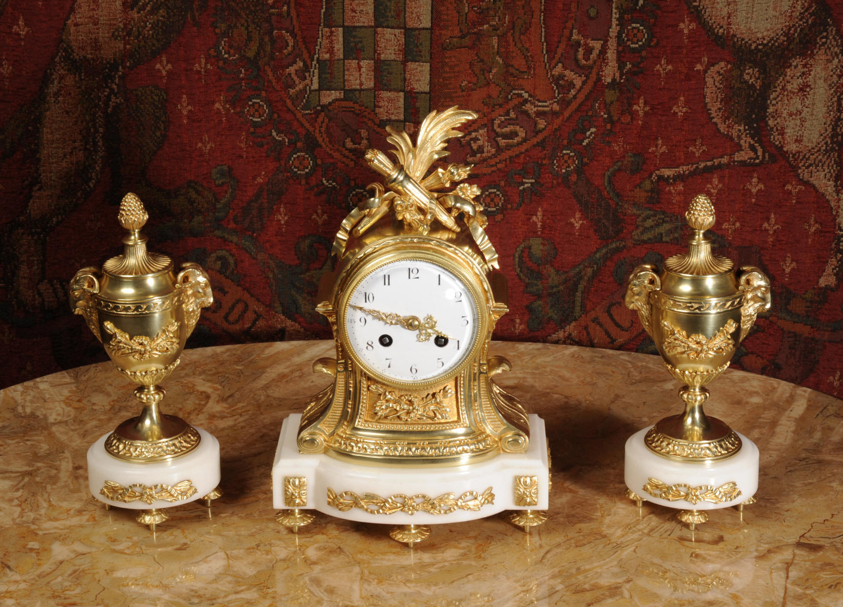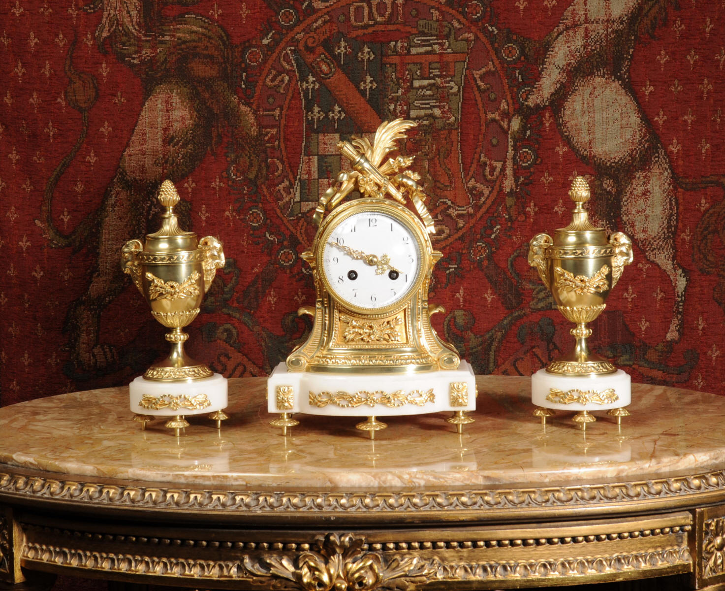 Clocks ~ Stunning White Marble and Ormolu Boudoir Clock Set