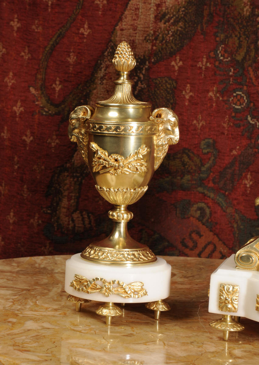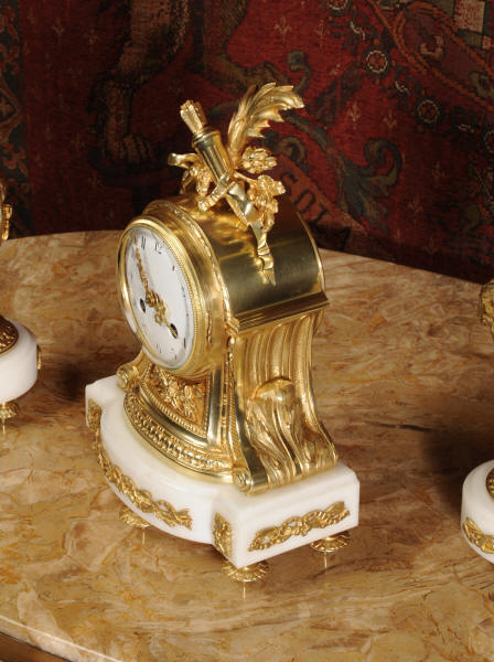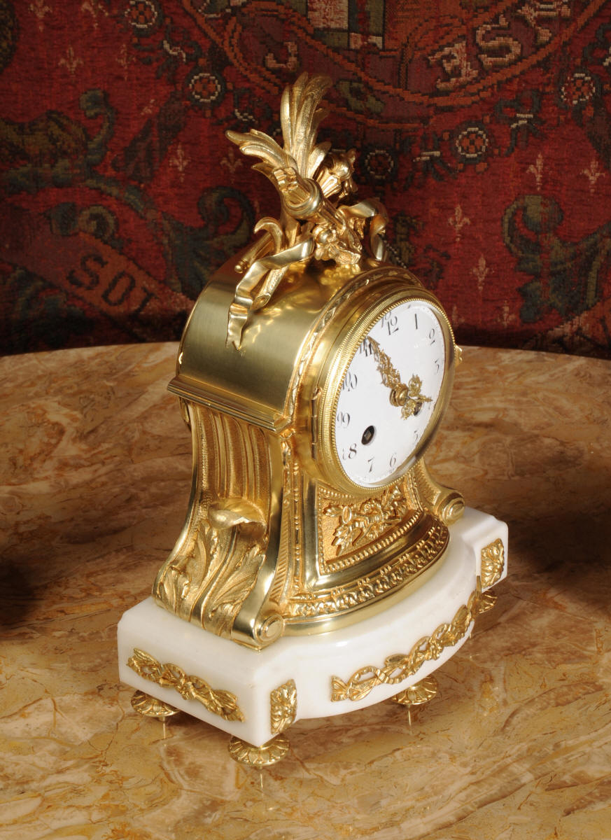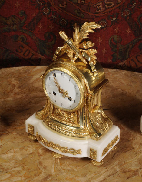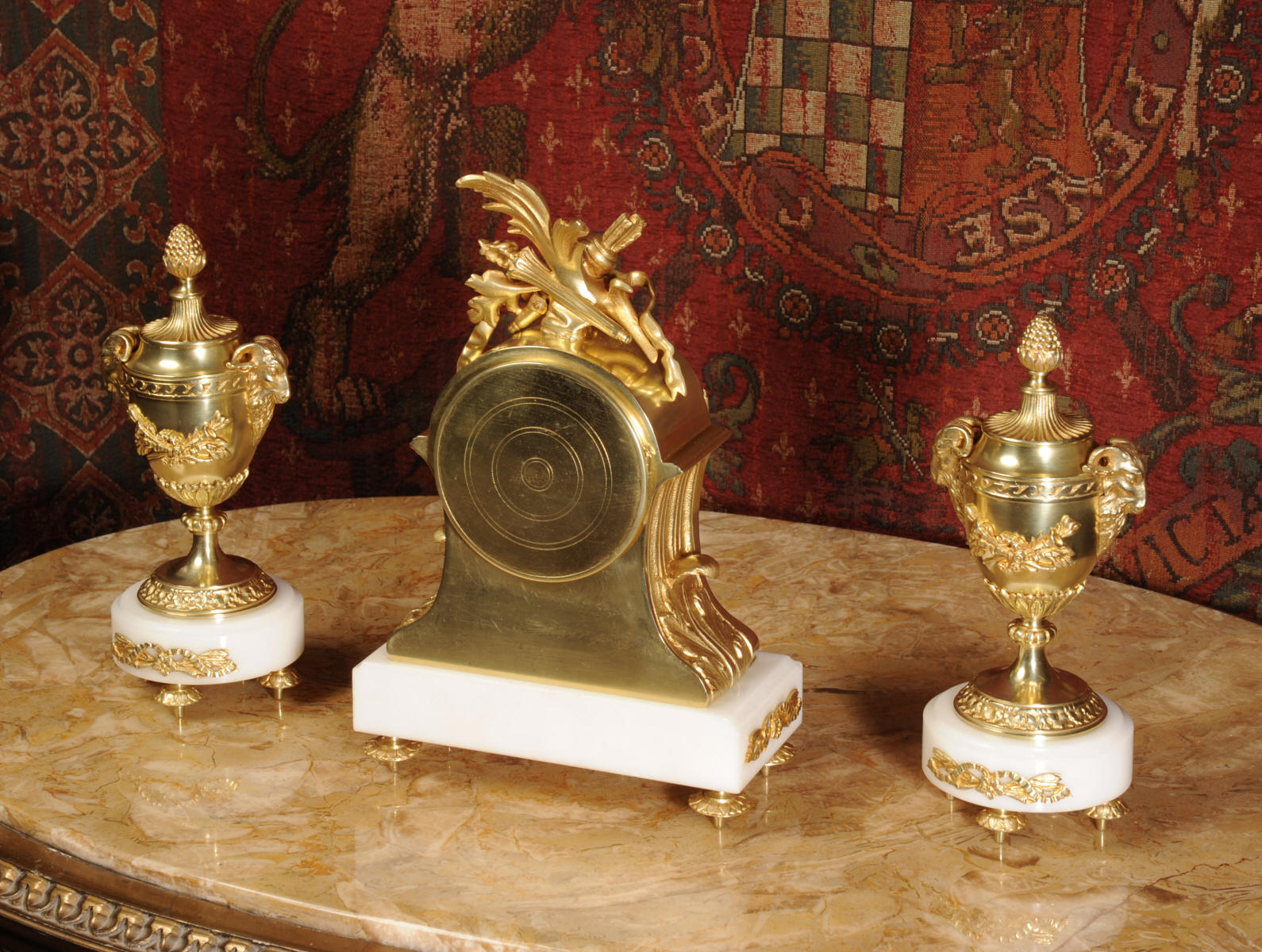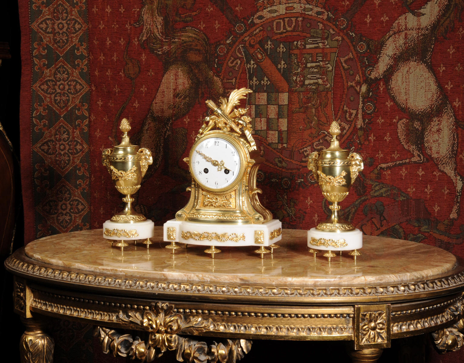 Clocks ~ Stunning White Marble and Ormolu Boudoir Clock Set