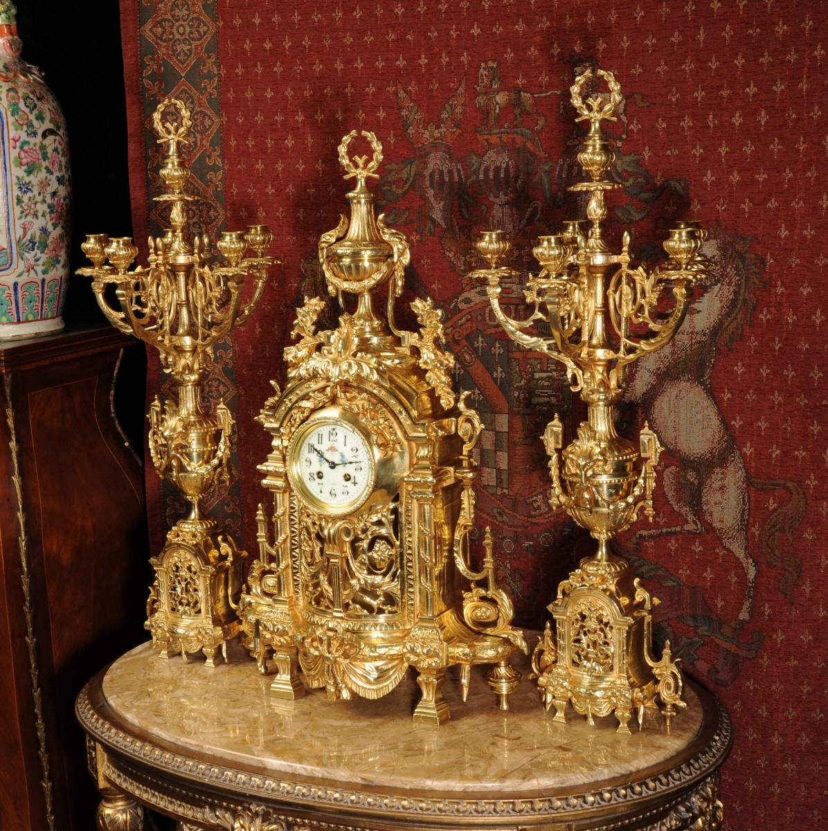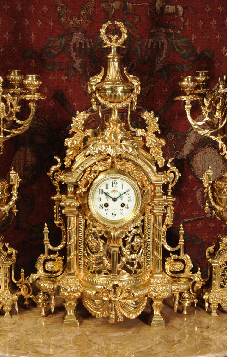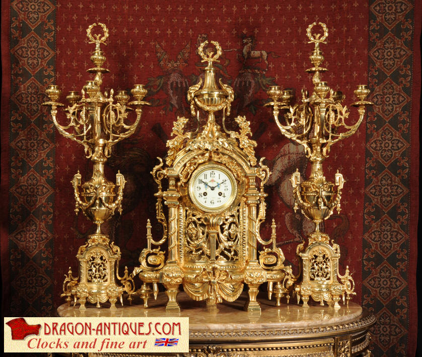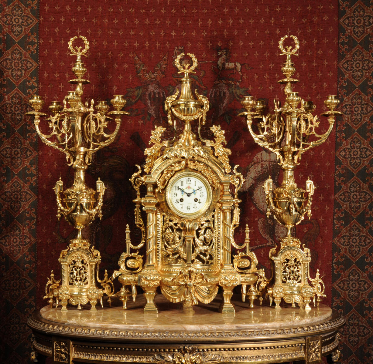 Antique Clocks ~ Huge Antique French Gilt Brass Clock Set