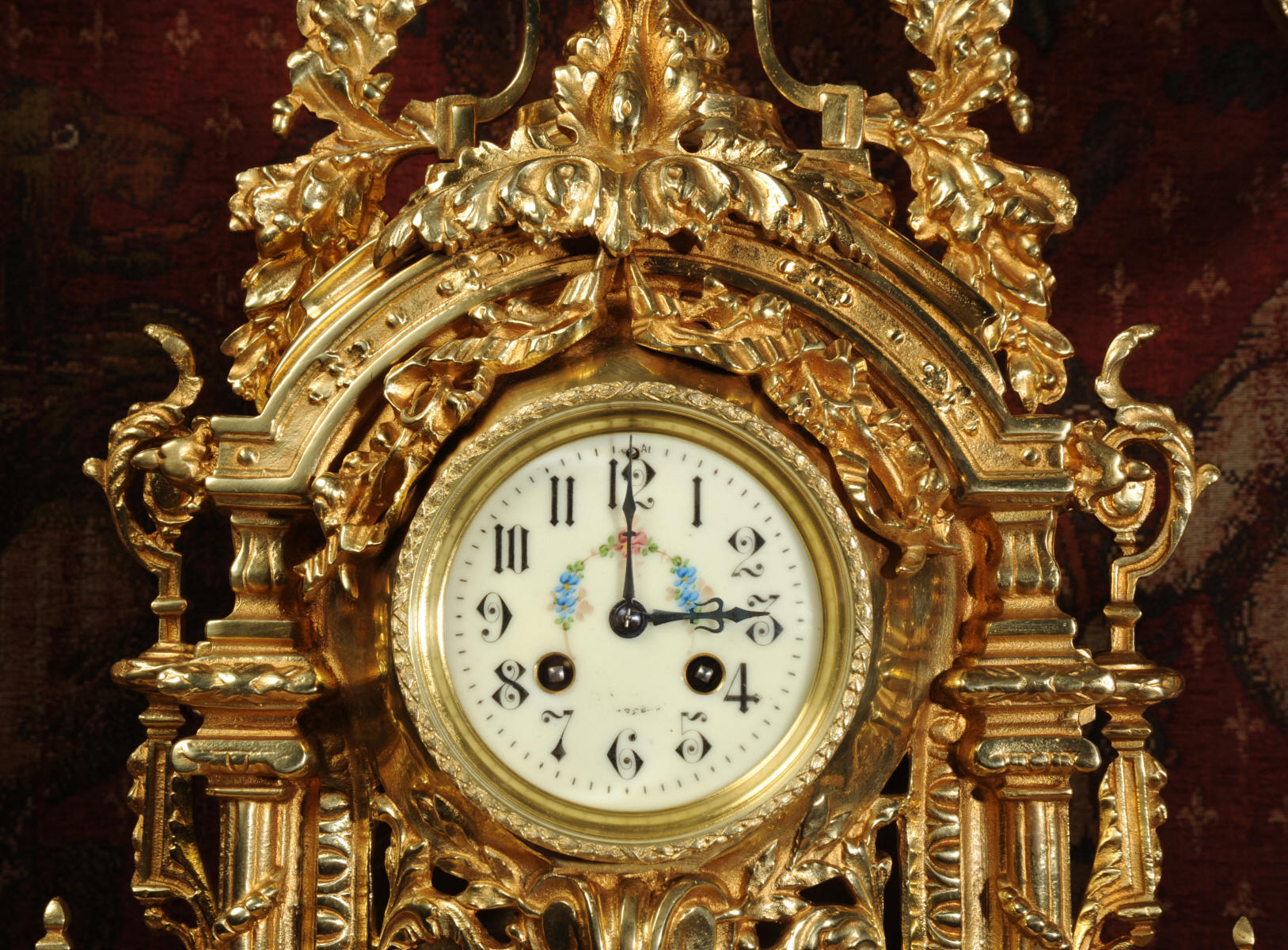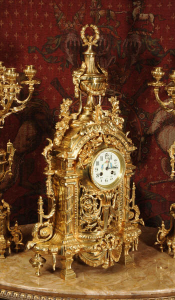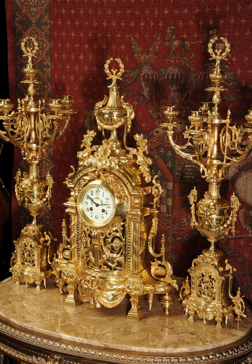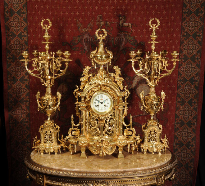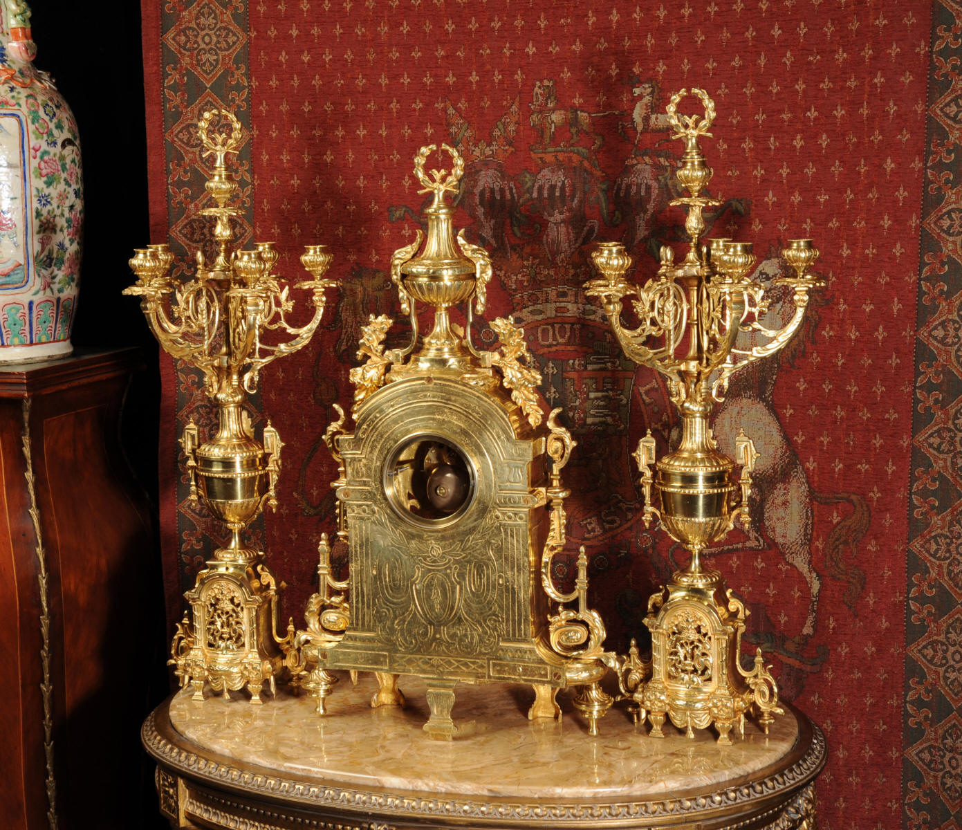 Antique Clocks ~ Huge Antique French Gilt Brass Clock Set