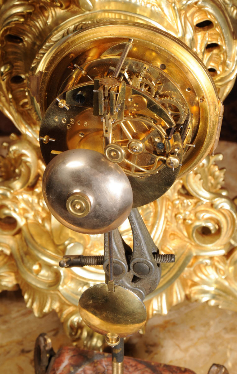 The movement is by Japy Freres and has the makers 'Grande Medaille D'Honneur' mark on the backplate. It is of high quality and is in excellent clean and running condition. Pendulum is original. It runs for 8 days and strikes the hours and halves on a bell. Click the video clip below to hear the bell and watch the clock running!