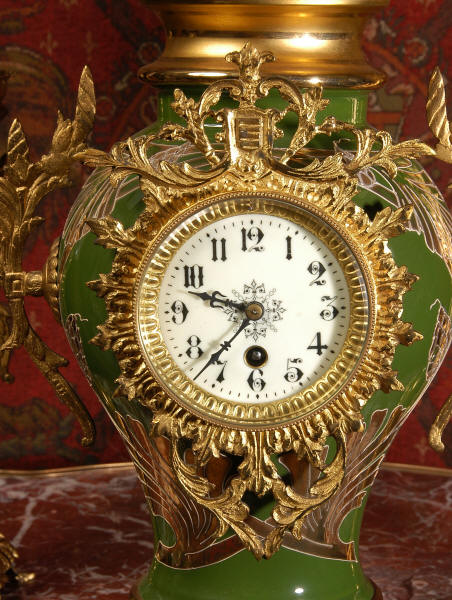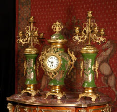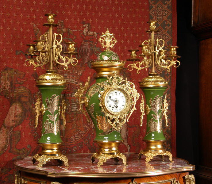 Gilt Brass and Pottery Clock Set