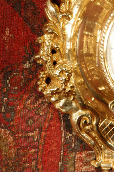 lions mask above the dial and an urn with flaming finial. To the side of the