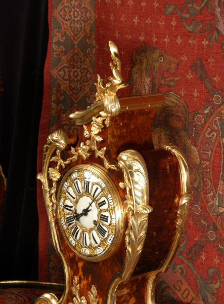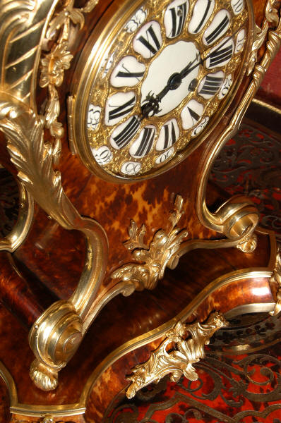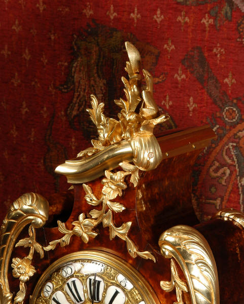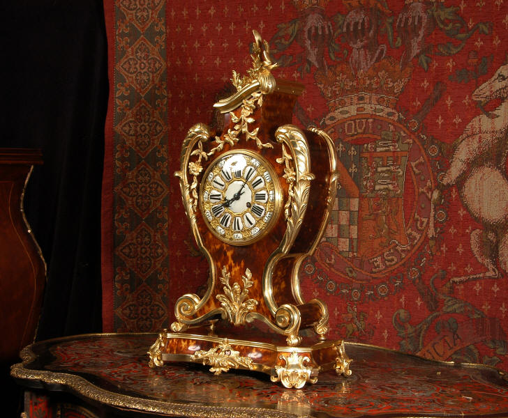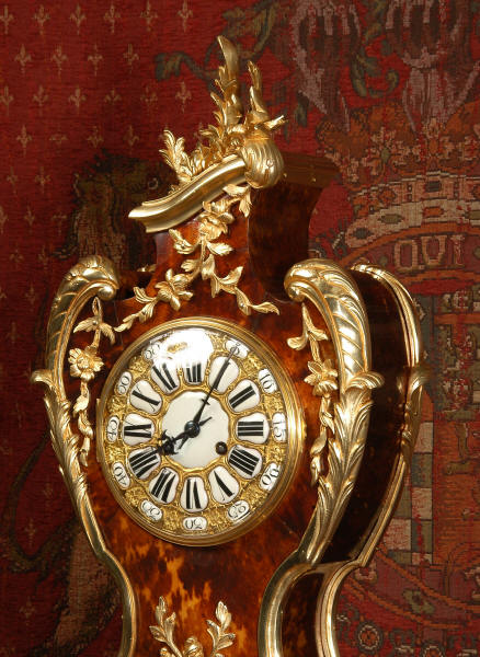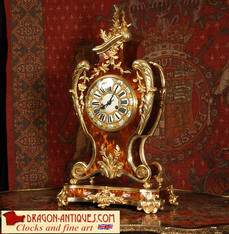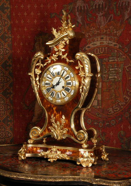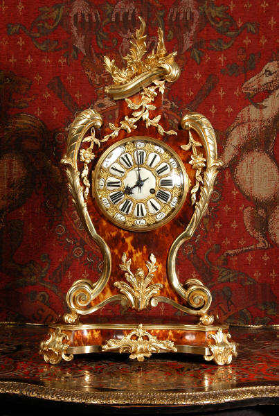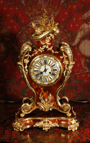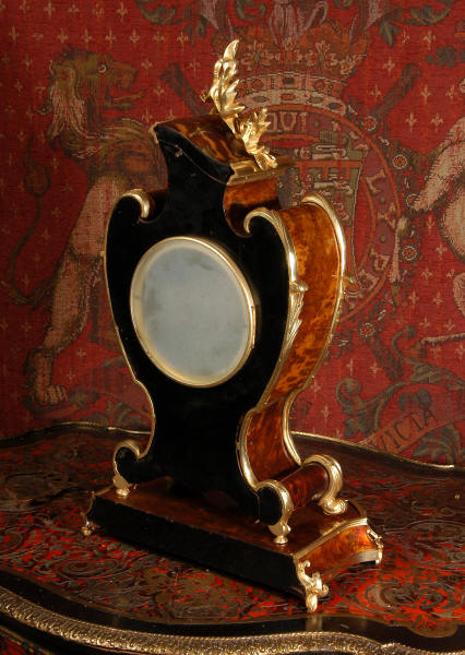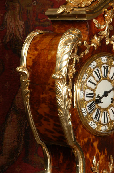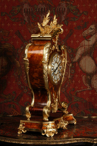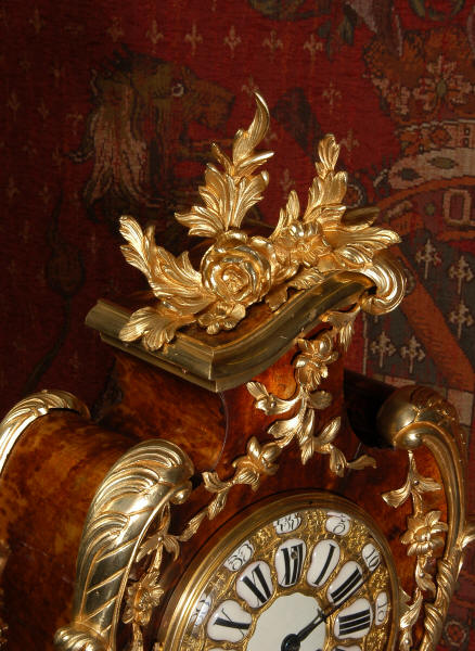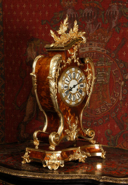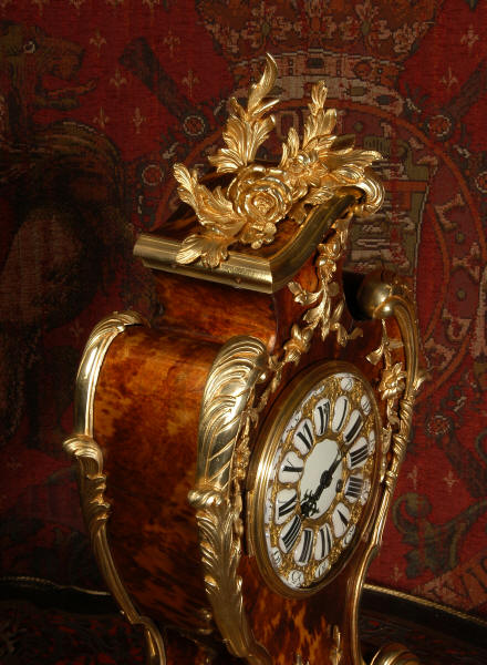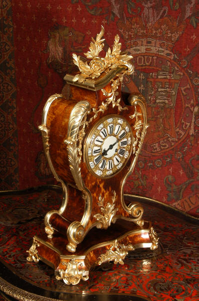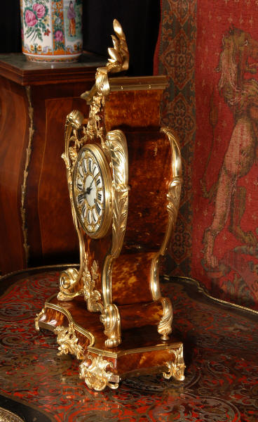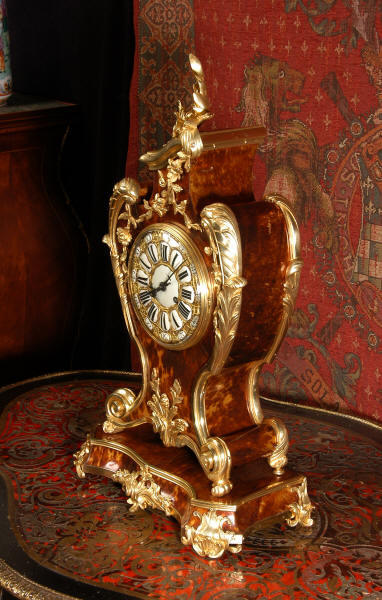 table clock in the Rococo style. It is made of a beautifully figured, antique