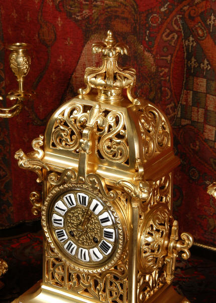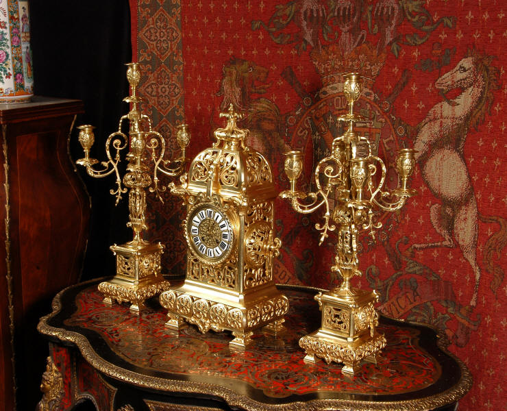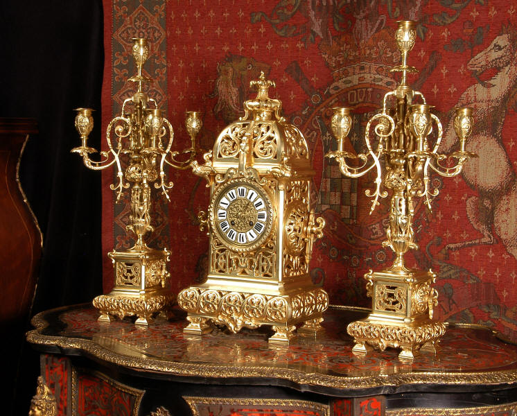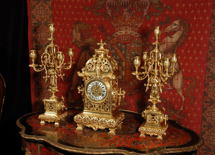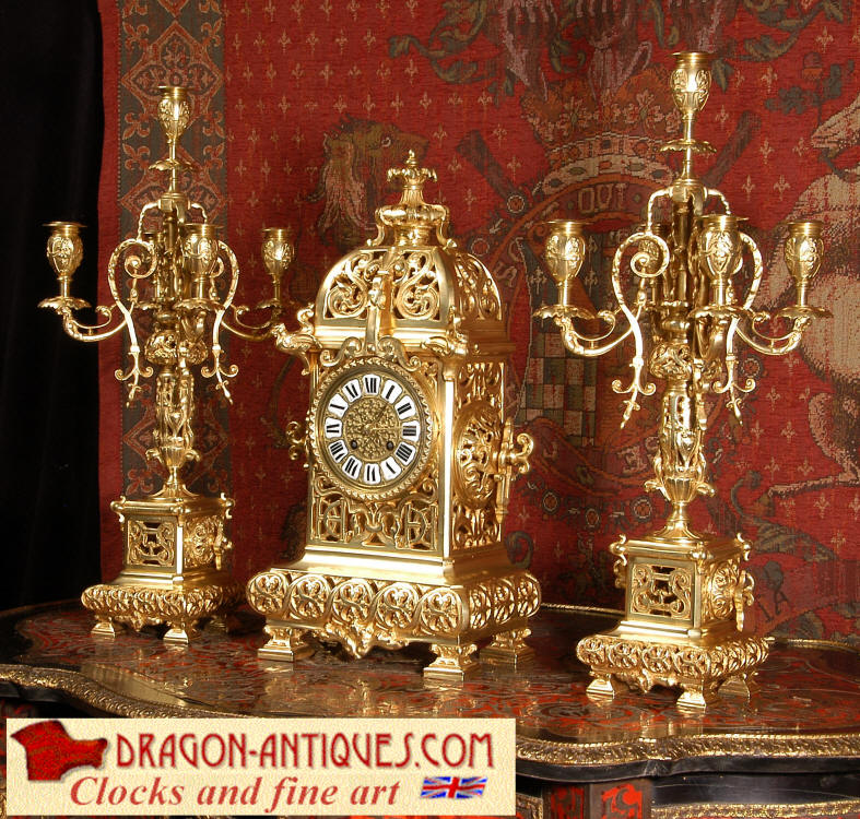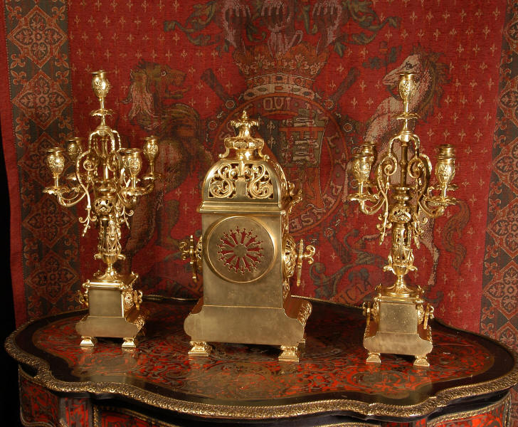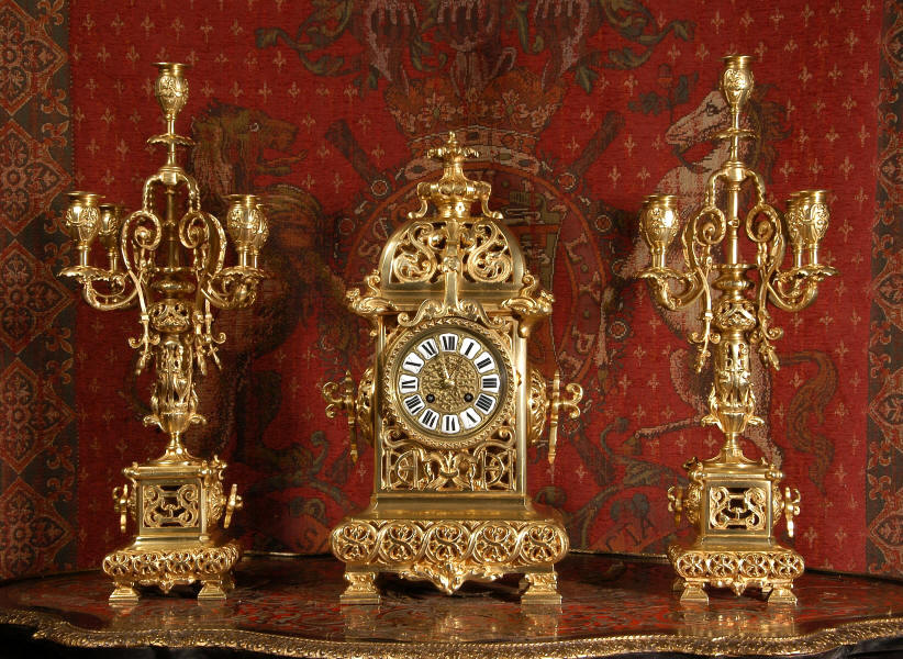 A very elegant brass clock set of good size by