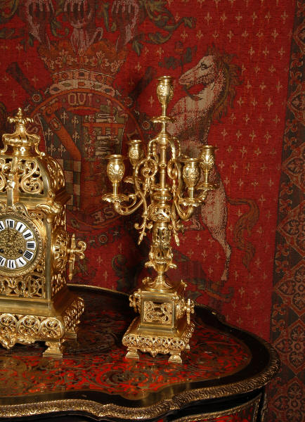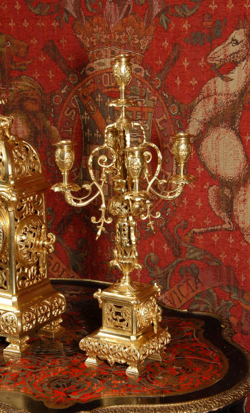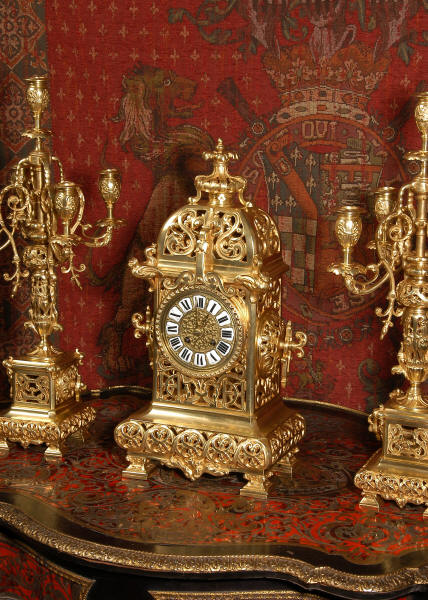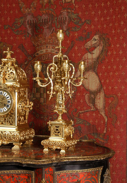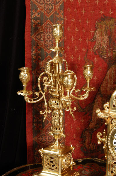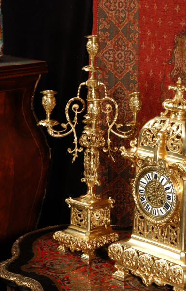An elegant clock set to add to your collection! Dimensions of clock: inches Height 18 1/2", Width 9 1/4", Depth 6" centimetres Height 47 cm, Width 23.5 cm, Depth 15 cm Dimensions of candelabra: inches Height 21 1/4", Width 8", Depth 7 1/4" centimetres Height 54 cm, Width 20.5 cm, Depth 20 cm