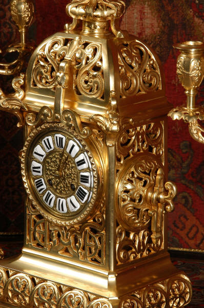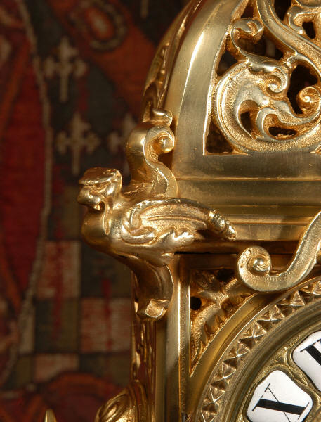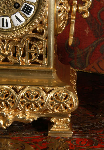 shaped base. The three sides of the clock are finely fretted with with entwined