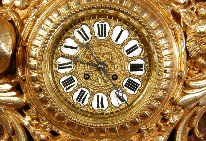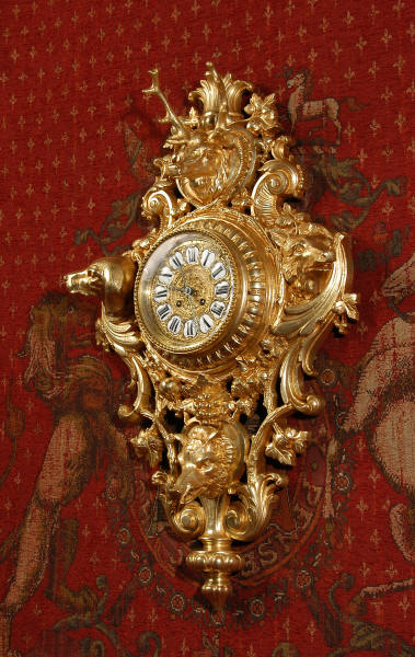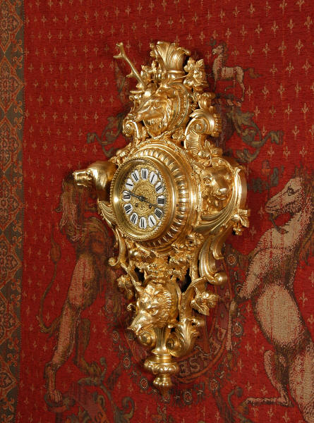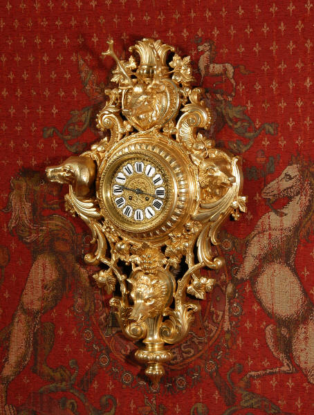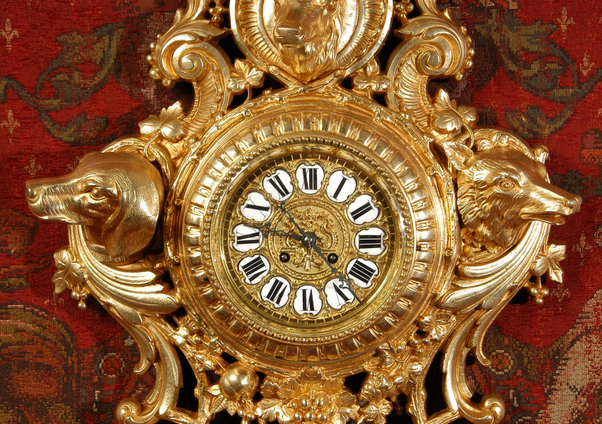 Freres Huge and Stunning Gilt Brass Cartel Wall Clock ~ Hunting