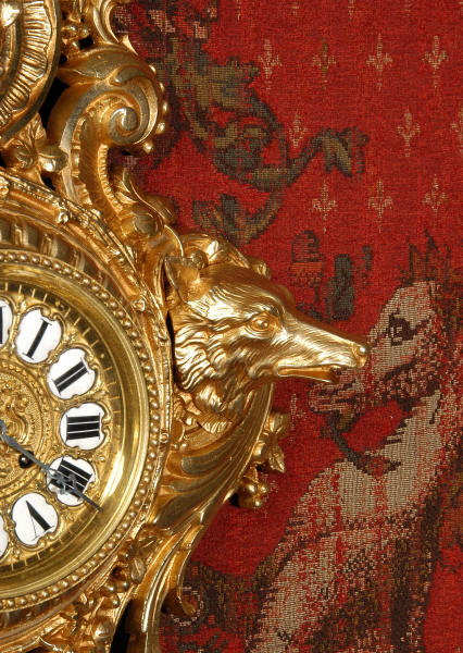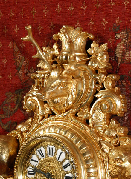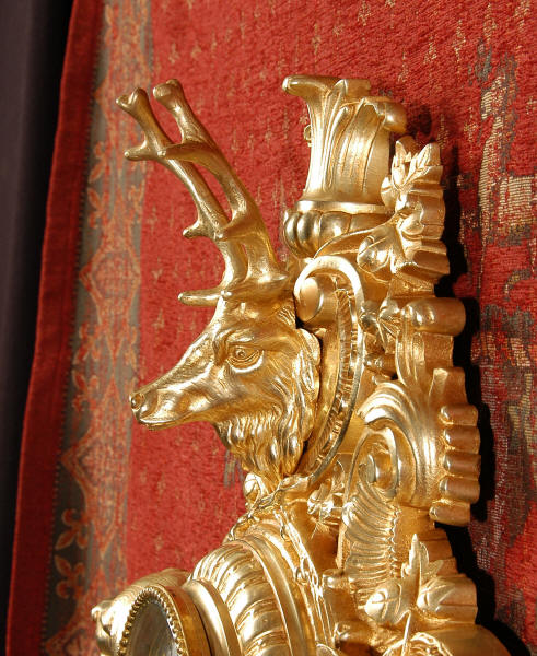 dial is a hunting trophy deer head with antlers. The large dial is also gilded