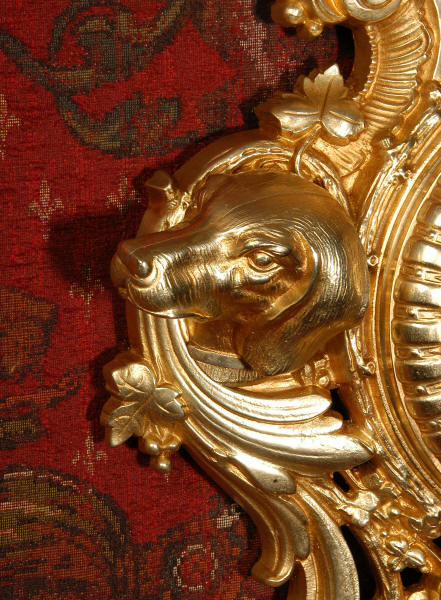 Black Forest carved wood examples, but is beautifully modelled in gilded brass.