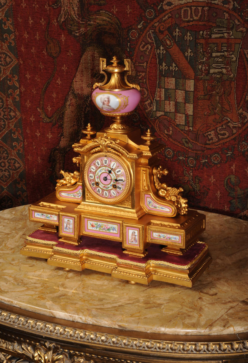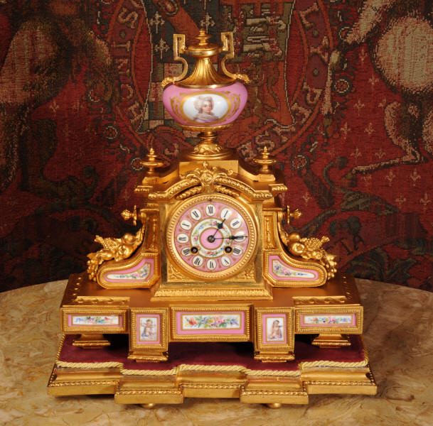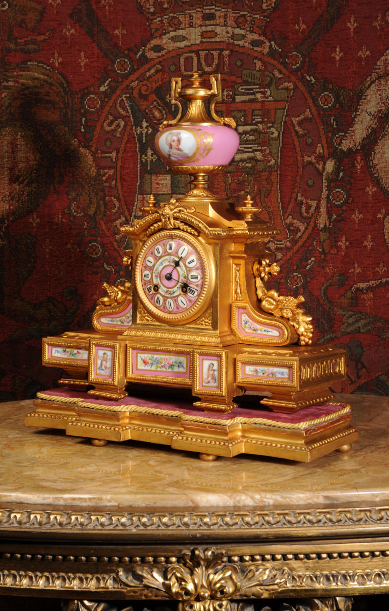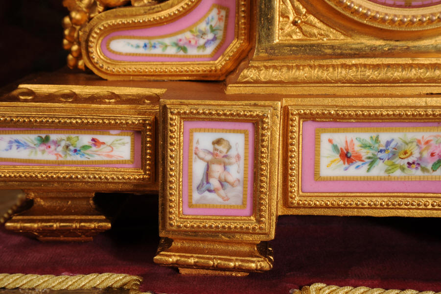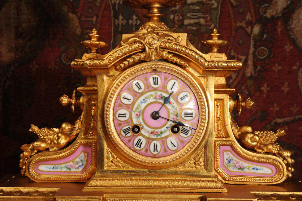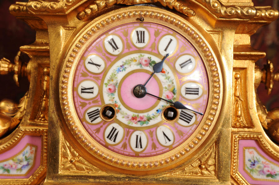 Clock ~ Pink Serves Porcelain and Gilt Metal by Japy Freres