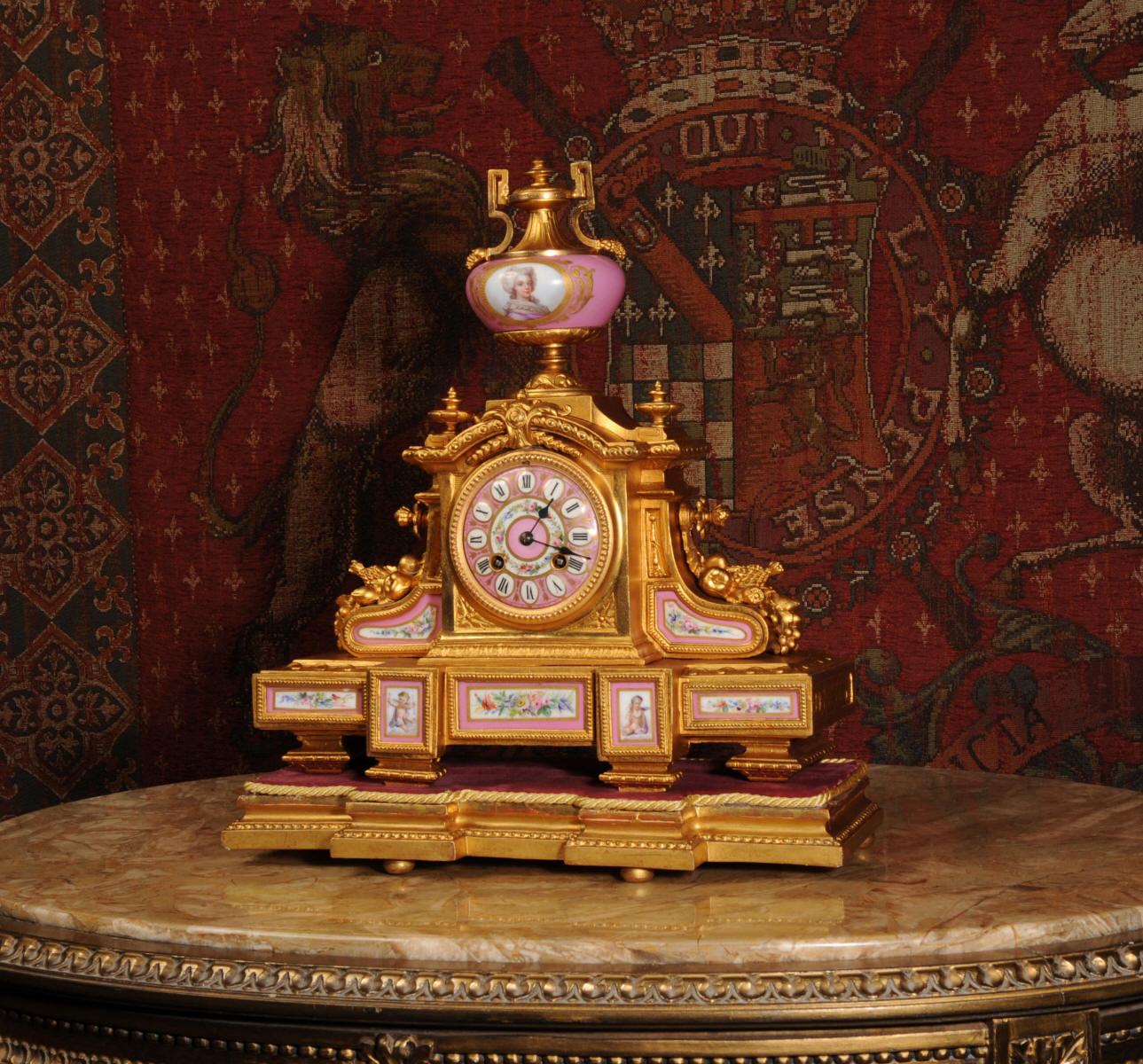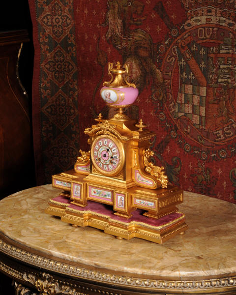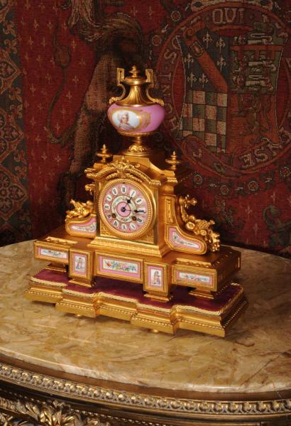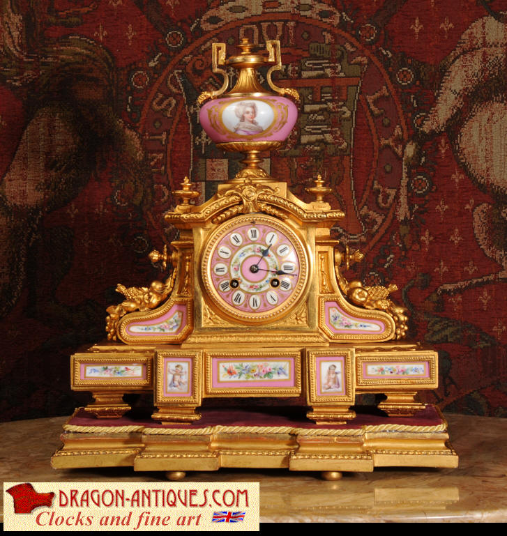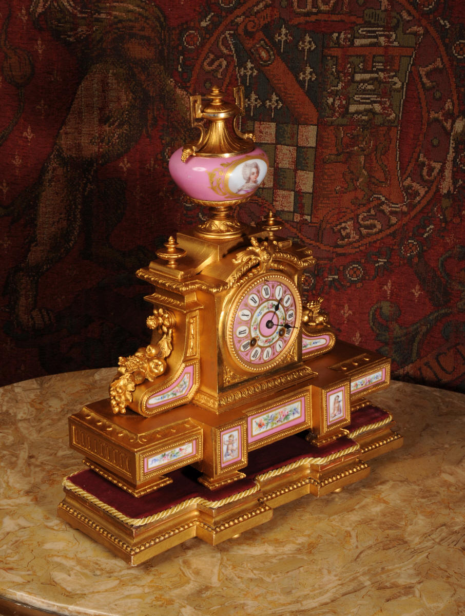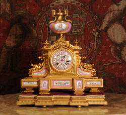 Clock ~ Pink Serves Porcelain and Gilt Metal by Japy Freres