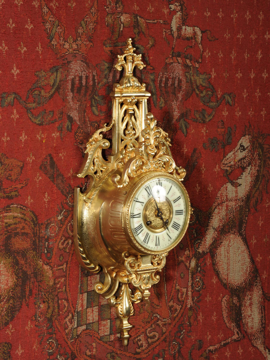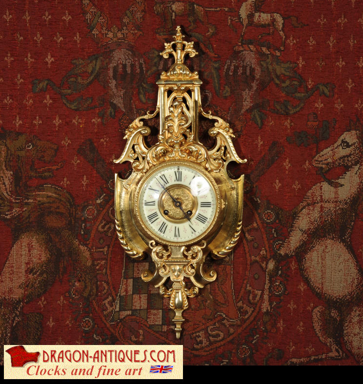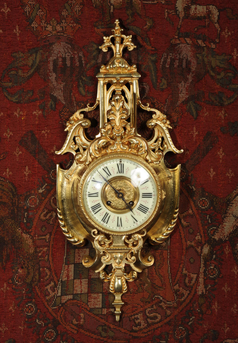 Wall Clock ~ French Gilt Bronze Cartel by Japy Freres