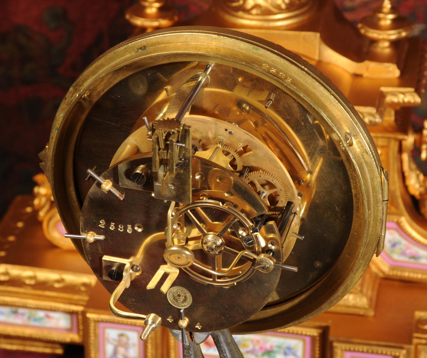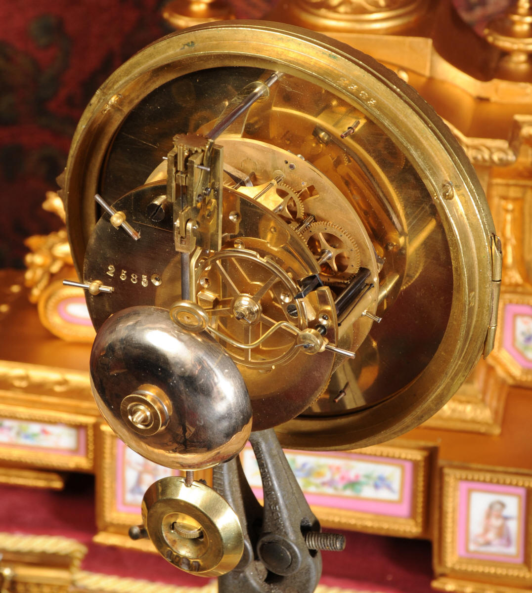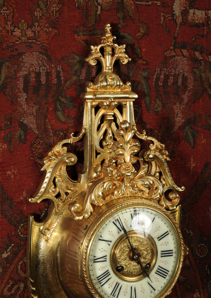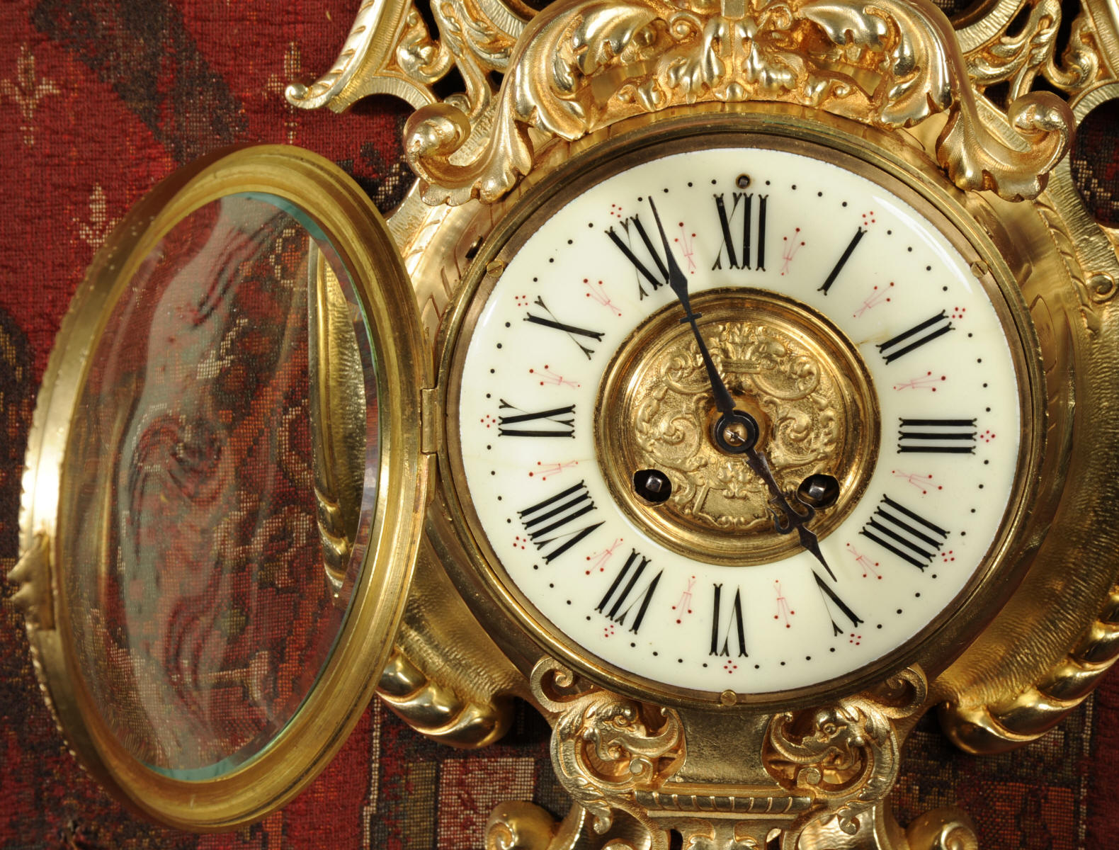 Condition of the case is excellent, the original gilding is beautifully clean and bright with hardly any wear or discolouration and there are no losses. The dial is also in excellent condition just 2 hairlines, one at the 2 o'clock and one between the 8 and 9 o'clock, these hardly detract. A stunning Japy Freres cartel to add to your collection.