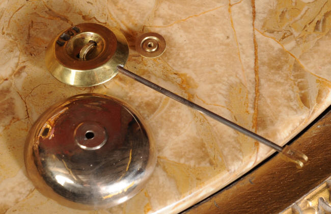 The French movement is by Japy Freres and has the clockmakers mark on the movement backplate. It is of high quality and is in excellent clean and running condition having been fully overhauled by our clockmaker. Pendulum is an old replacement. It runs for 8 days and strikes the hours and halves on a bell. Click the video clip below to hear the bell and watch the clock running!